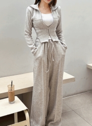リネン混ストリング付ワイドパンツ・t00692
