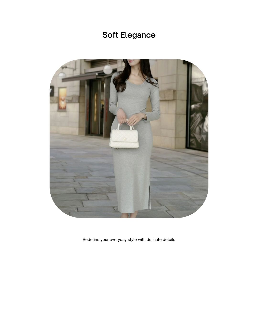 スクエアネックロングリブワンピース