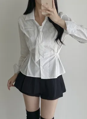 ボウタイ付サイドボタンストライプシャツ