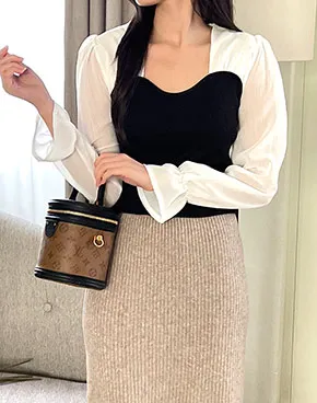ダイアゴナルリボンレイヤード風リブニット