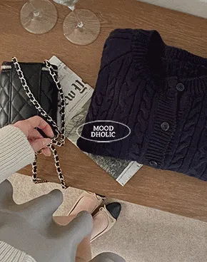 ラウンドラグランケーブルカーディガン
