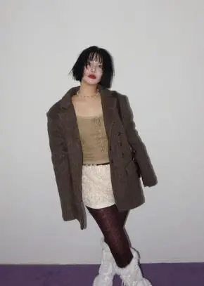 キルティングウール混ボタンカラーオーバーサイズジャケット