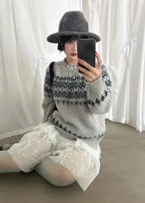 ラウンドネックベーシック長袖ノルディックカラーニット