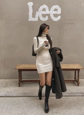 タートルサムホールニットミニワンピース