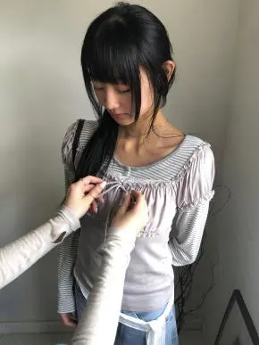 サイドストリングリボンワンショルTシャツ