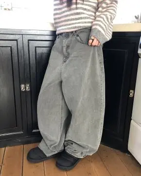 スタッズバルーンウォッシングワイドデニムパンツ