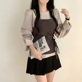 長袖ラウンドネックアンサンブルブラウスビスチェ