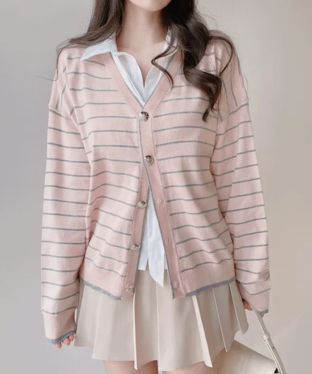 Vネックボーダー配色カーディガン
