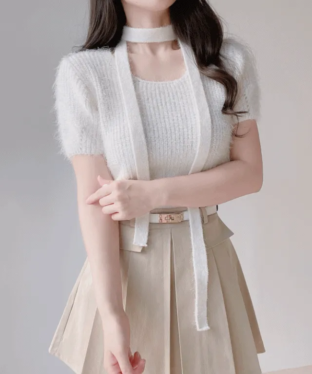 ボウタイ半袖ニット