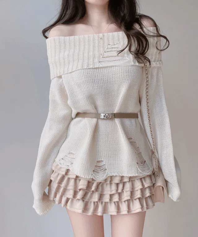 アンバランスオフショルダーニット