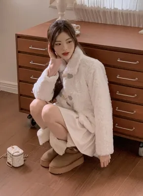ファー裏地ノーカラージップアップスナップボタンポケットルーズジャケット