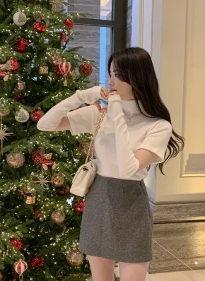 ハイウエストスリットAラインミニ無地スカートパンツ