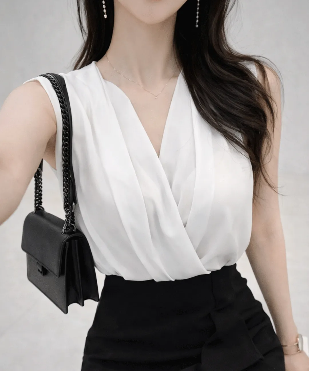 タックVネックノースリブラウス
