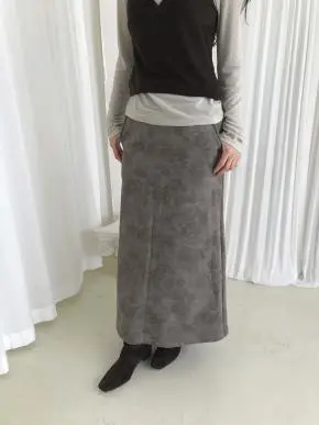 裏起毛ドローストリングスリットポケットウエストゴムロングAライン花柄スカート