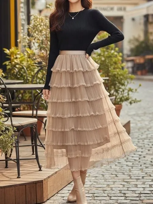 目を引くサイドボタンディテールのスカートです。
