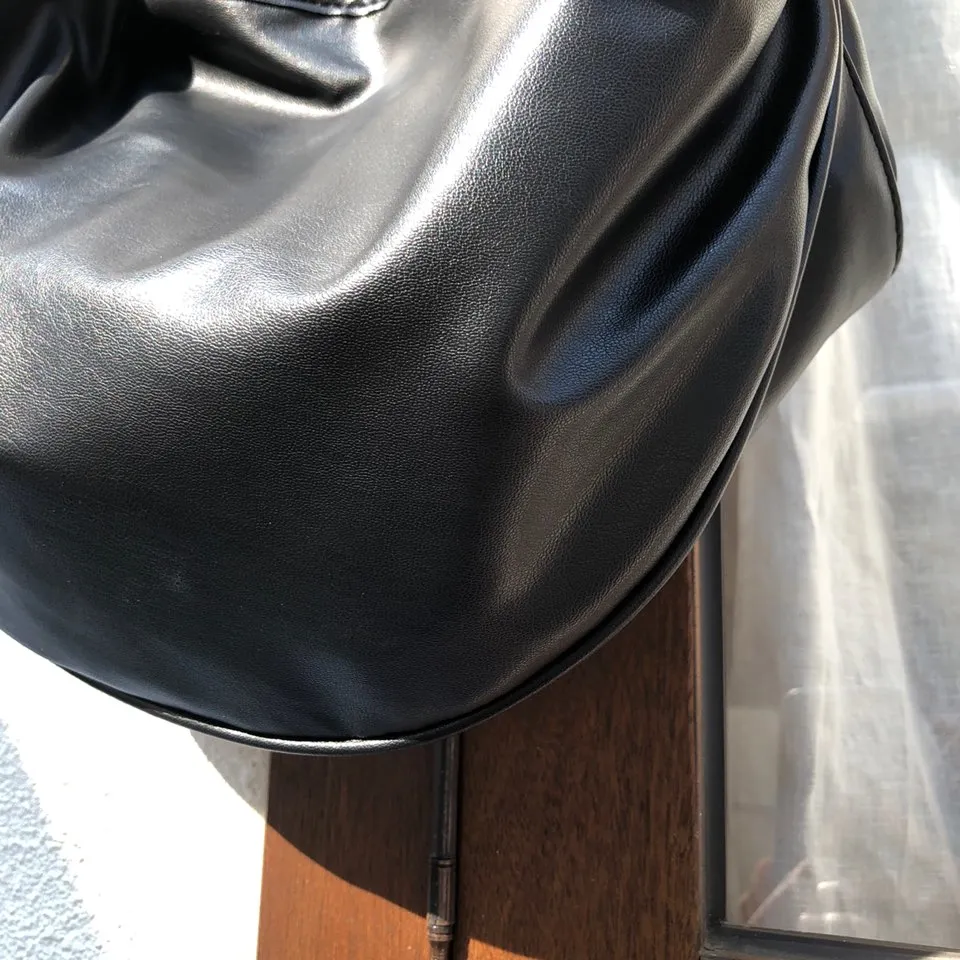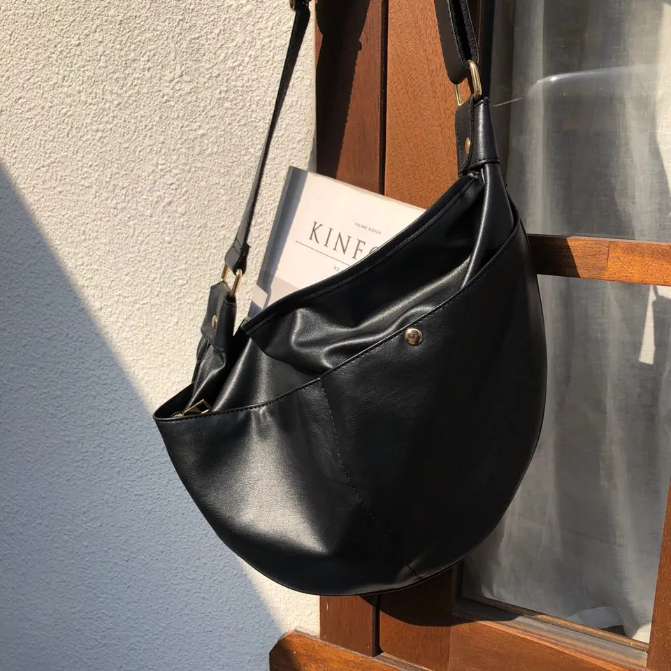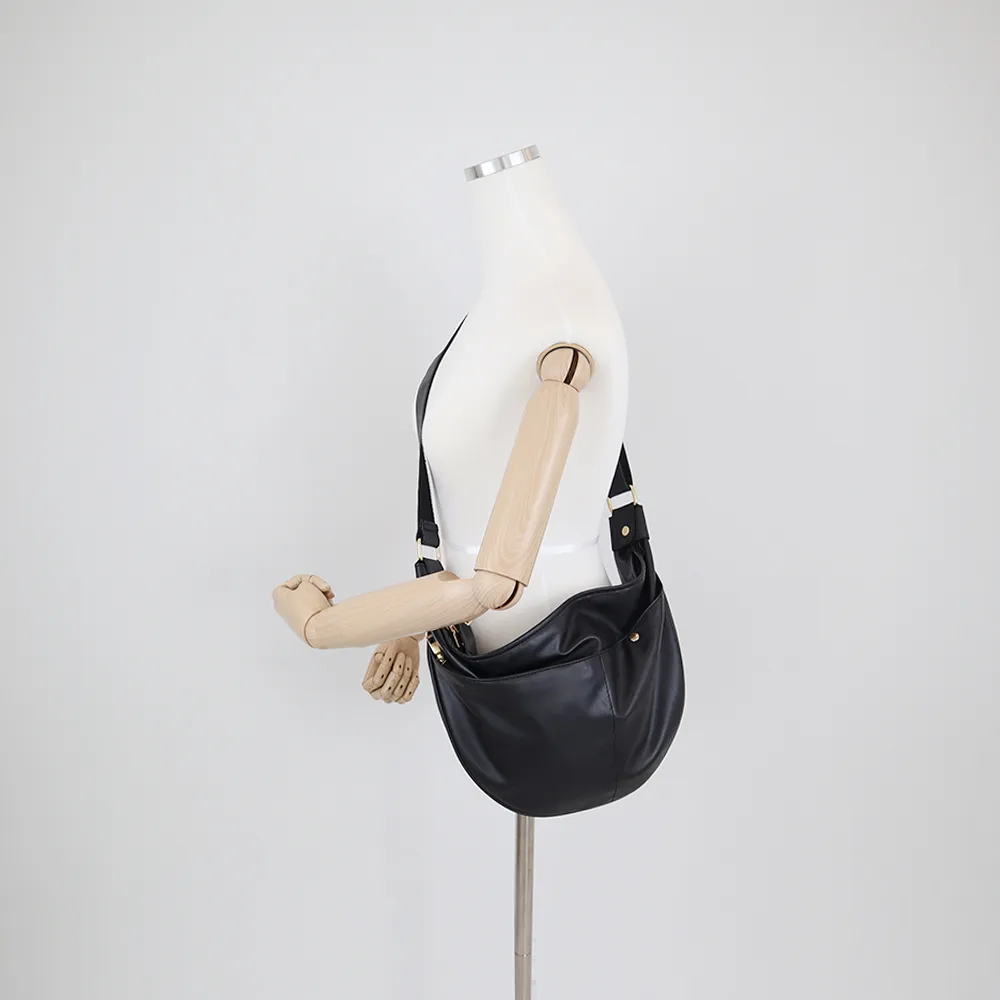 leather two-pocket halrfmoon cross bag