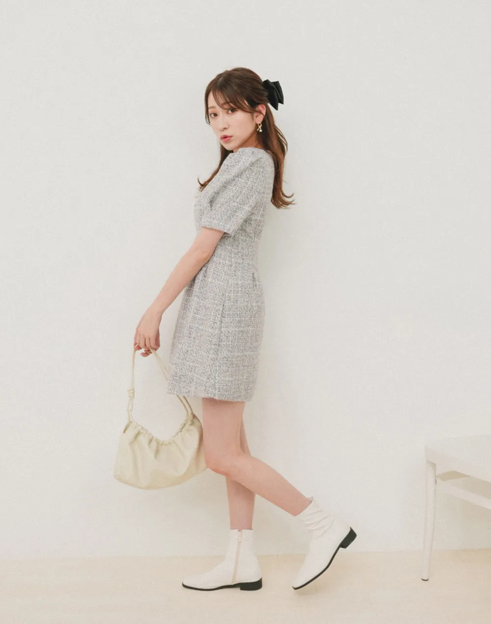 歩きやすい低めのヒールのブーツ。センターにステッチラインが入っておりすらっとした雰囲気に。