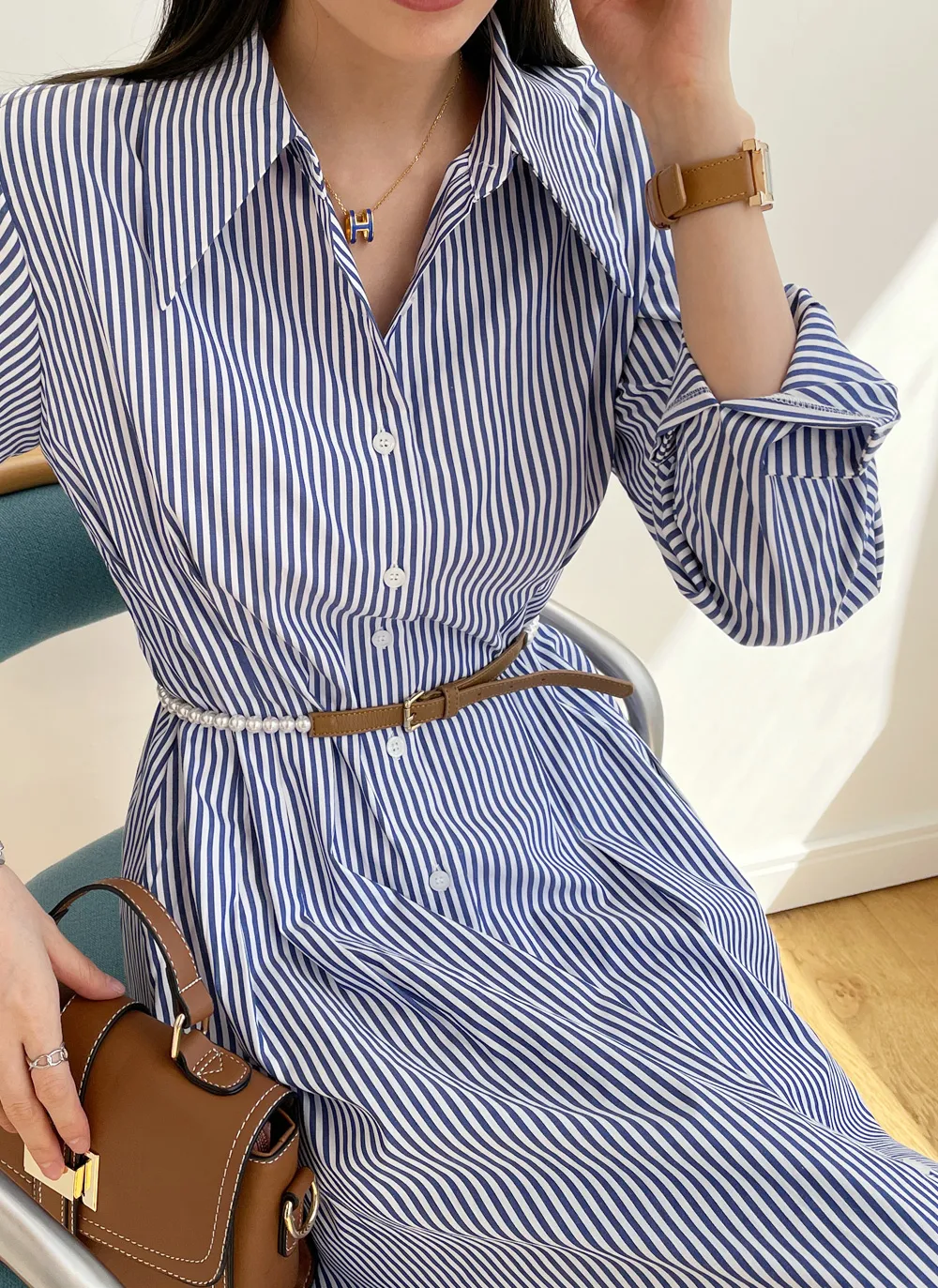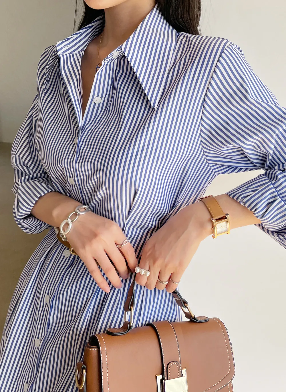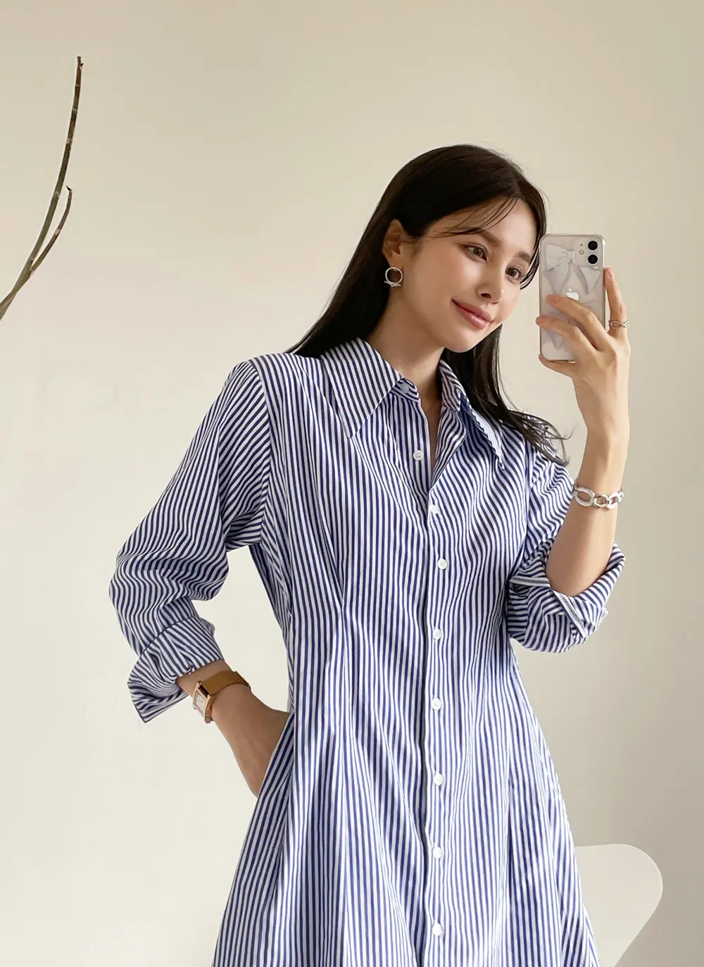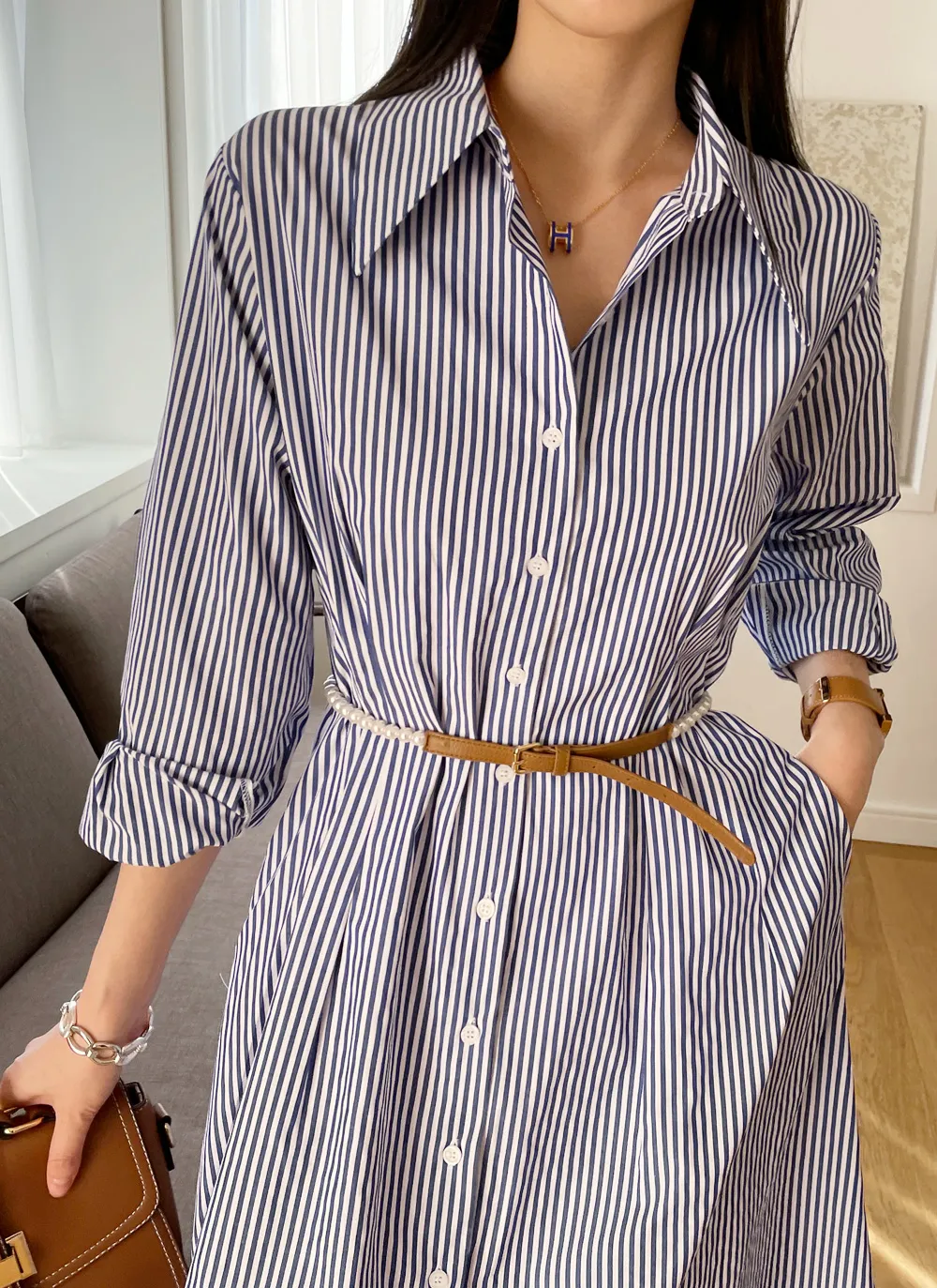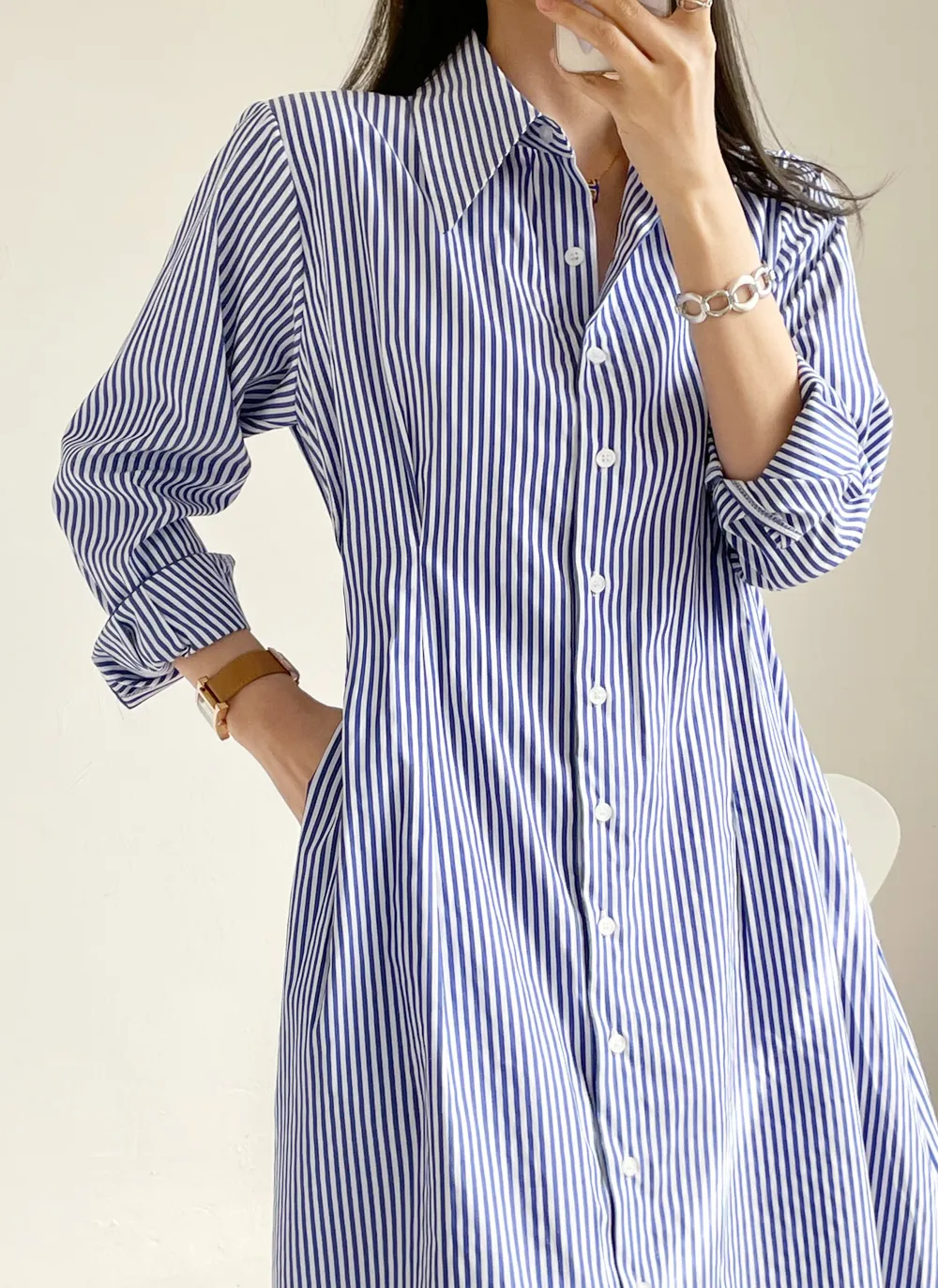 様々なスタイリングが可能なシャツワンピース。