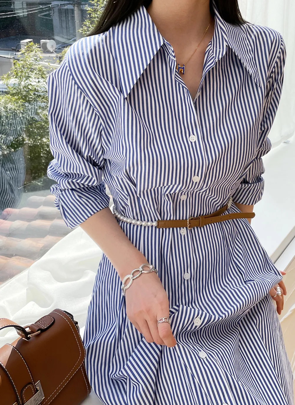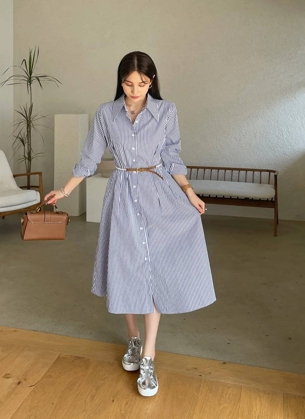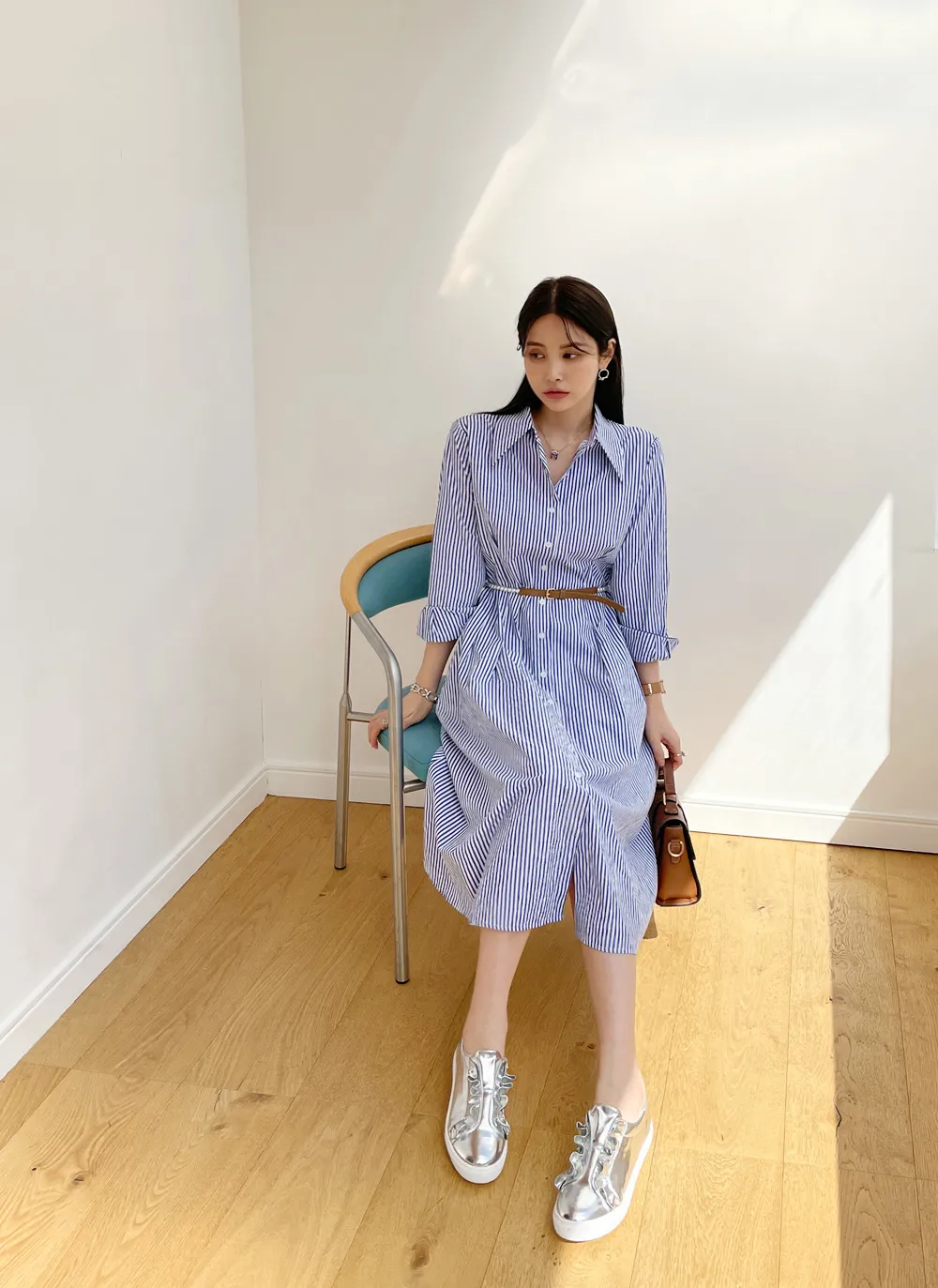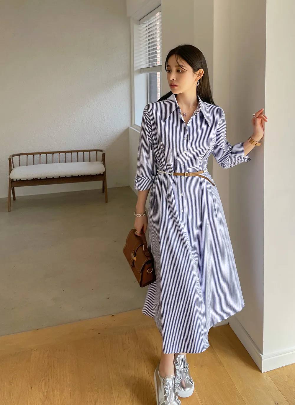 様々なスタイリングが可能なシャツワンピース。