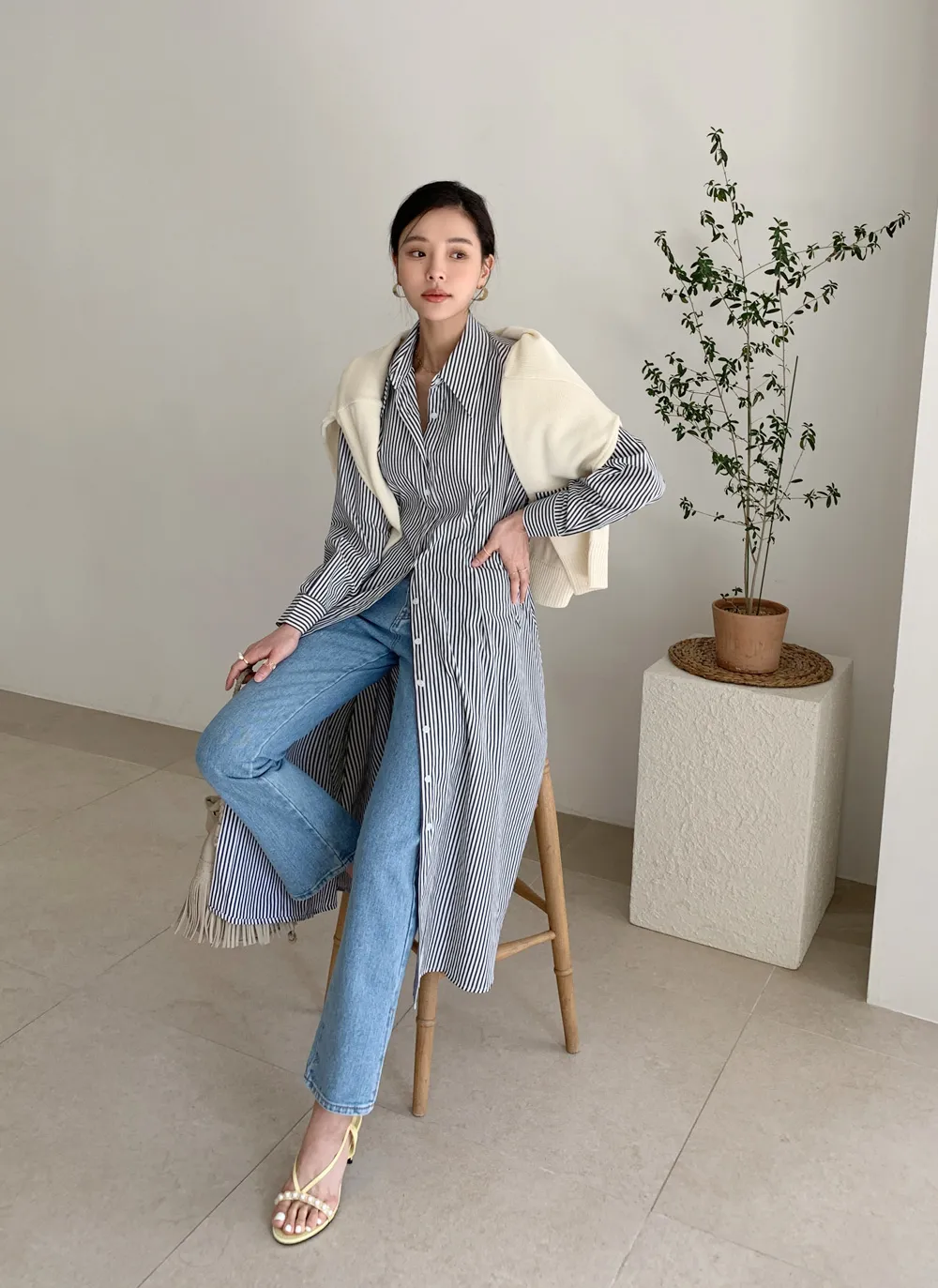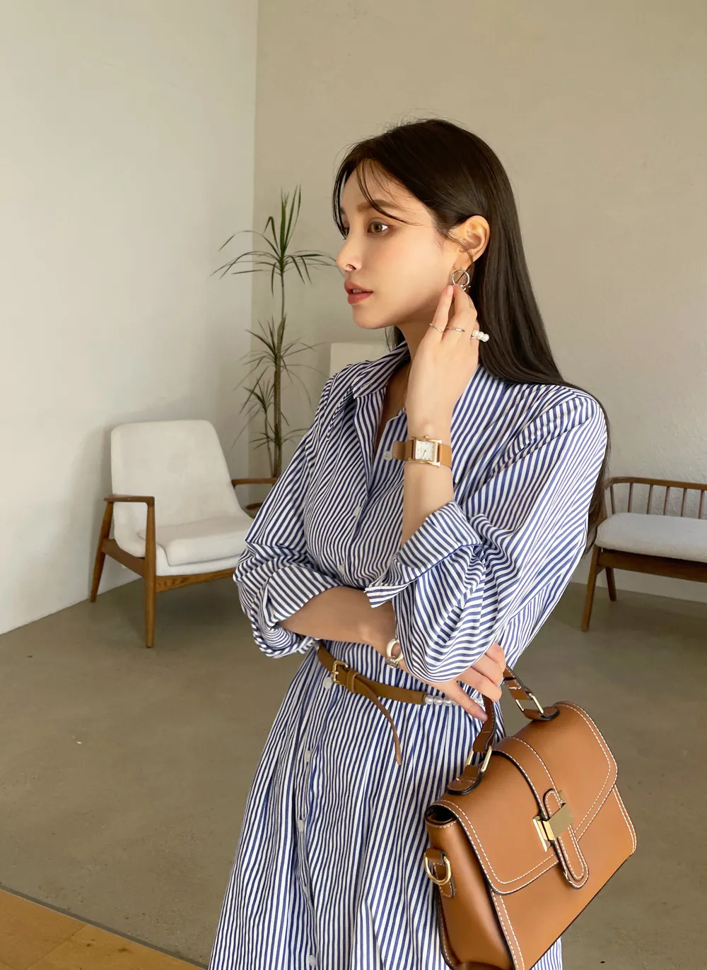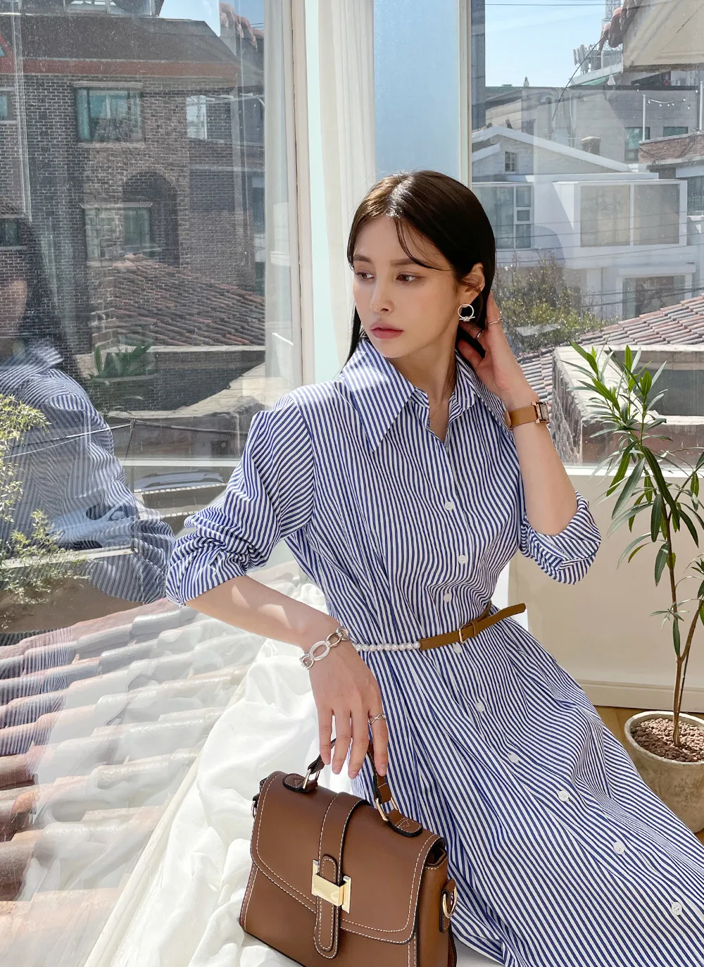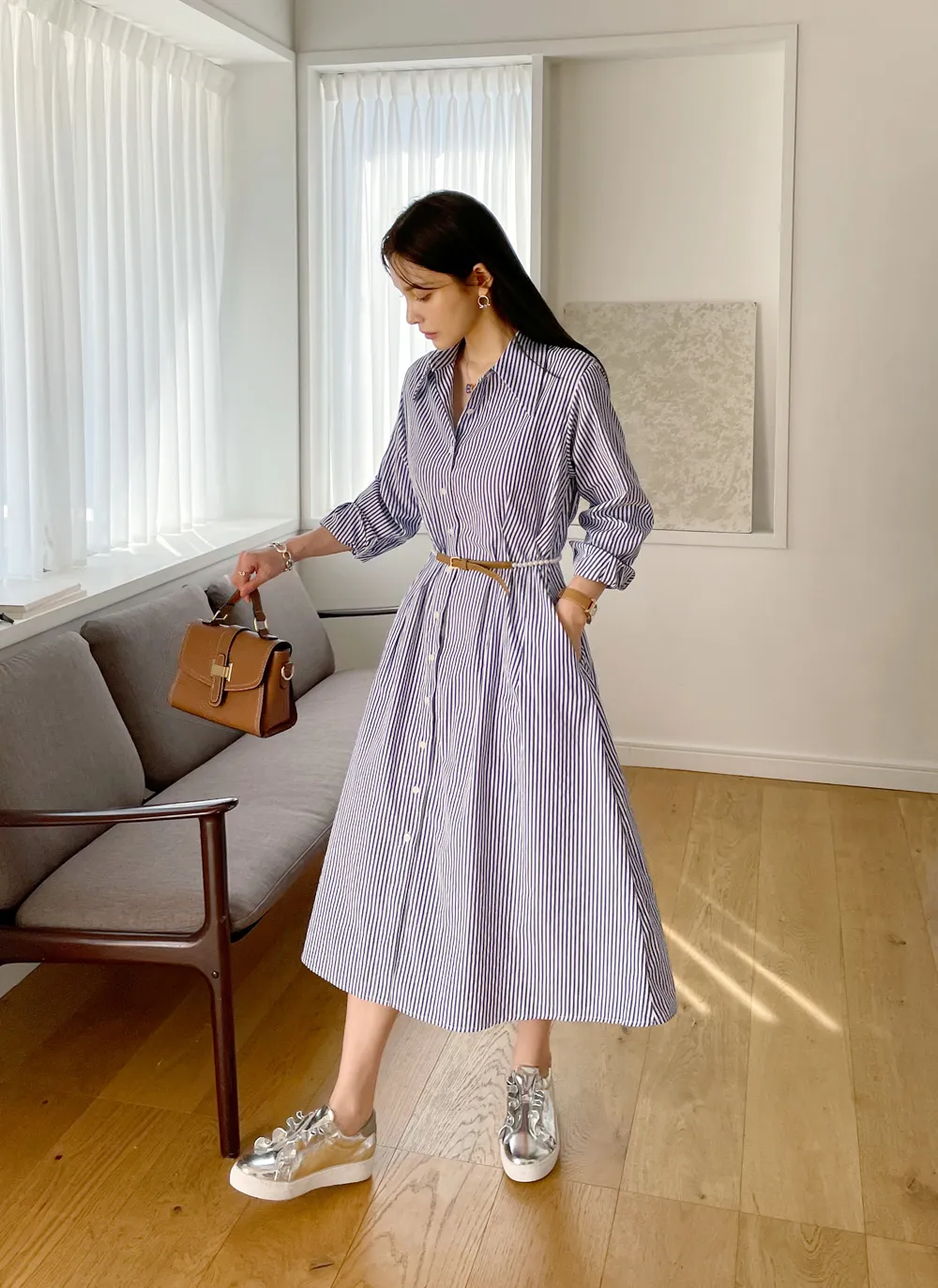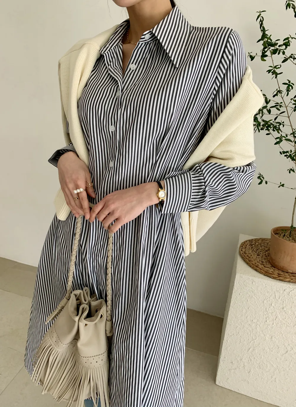 様々なスタイリングが可能なシャツワンピース。