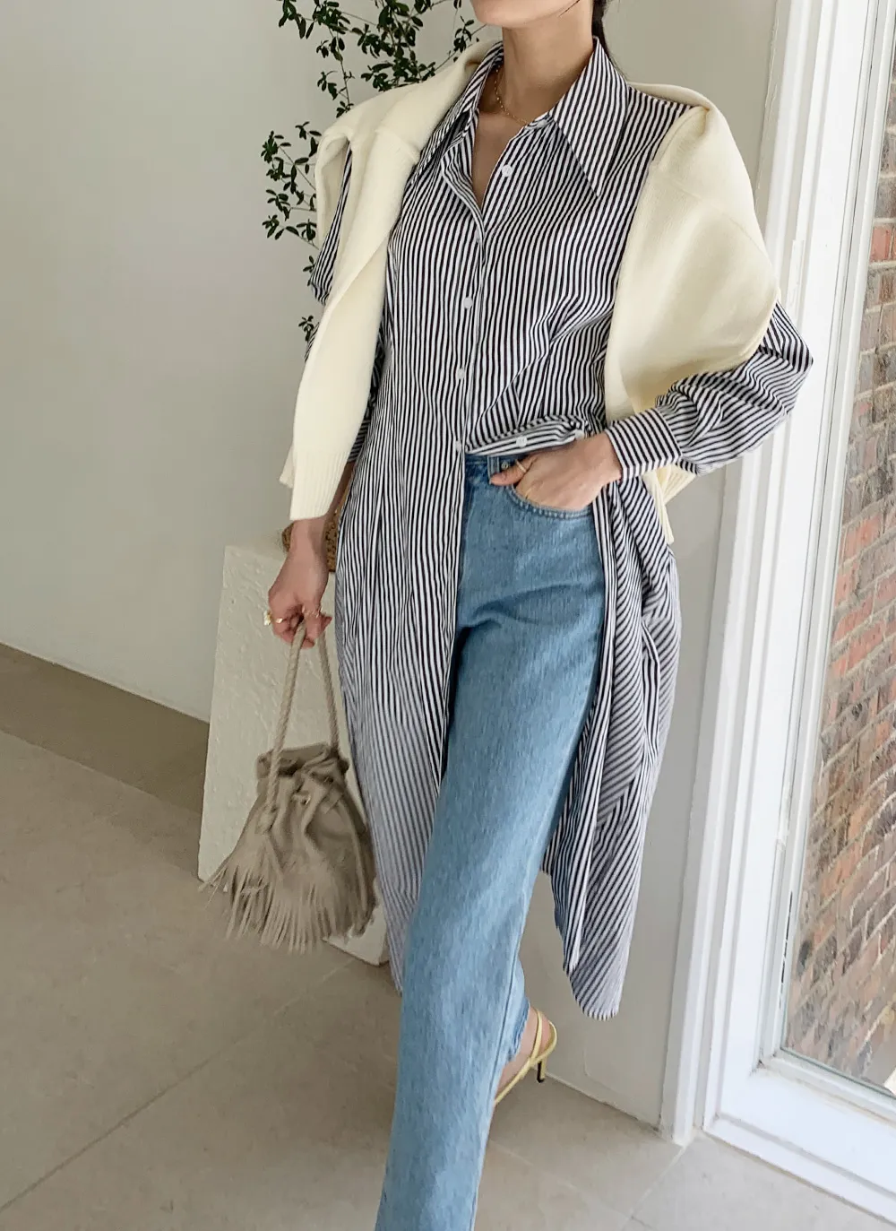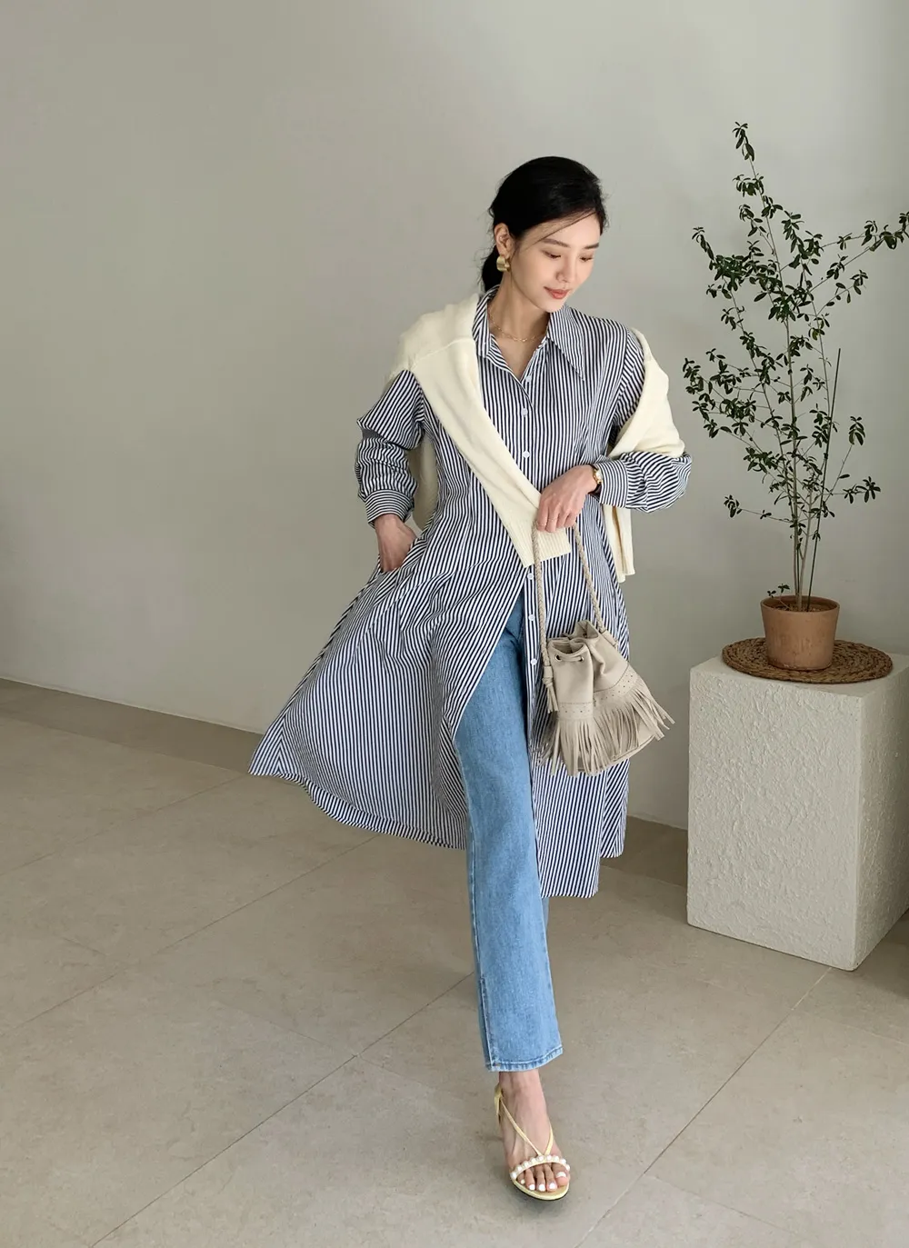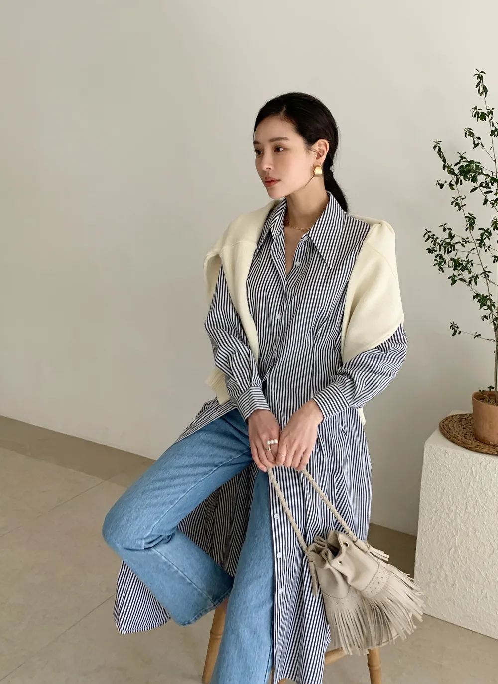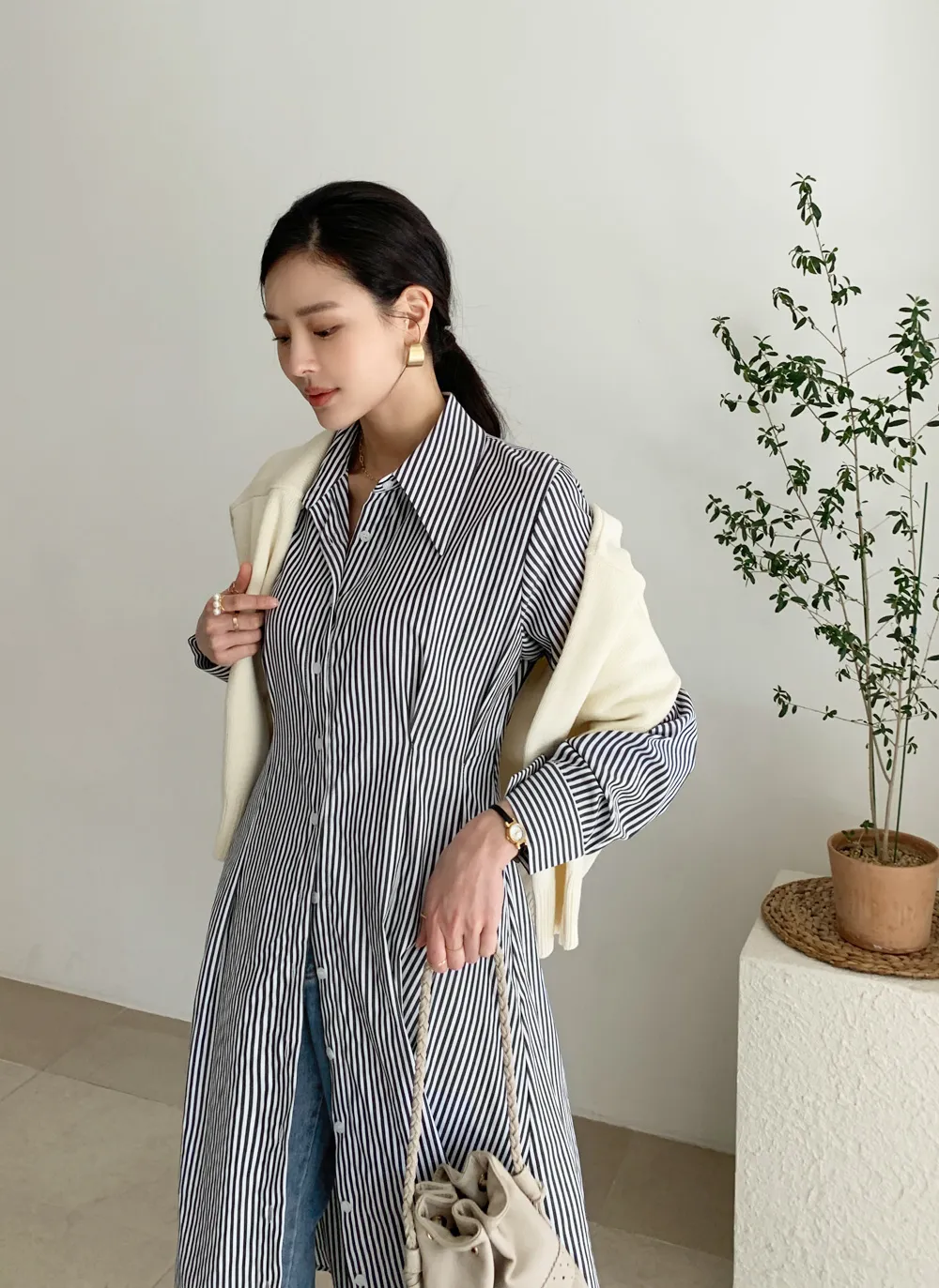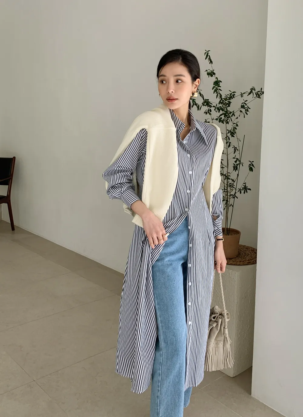 様々なスタイリングが可能なシャツワンピース。