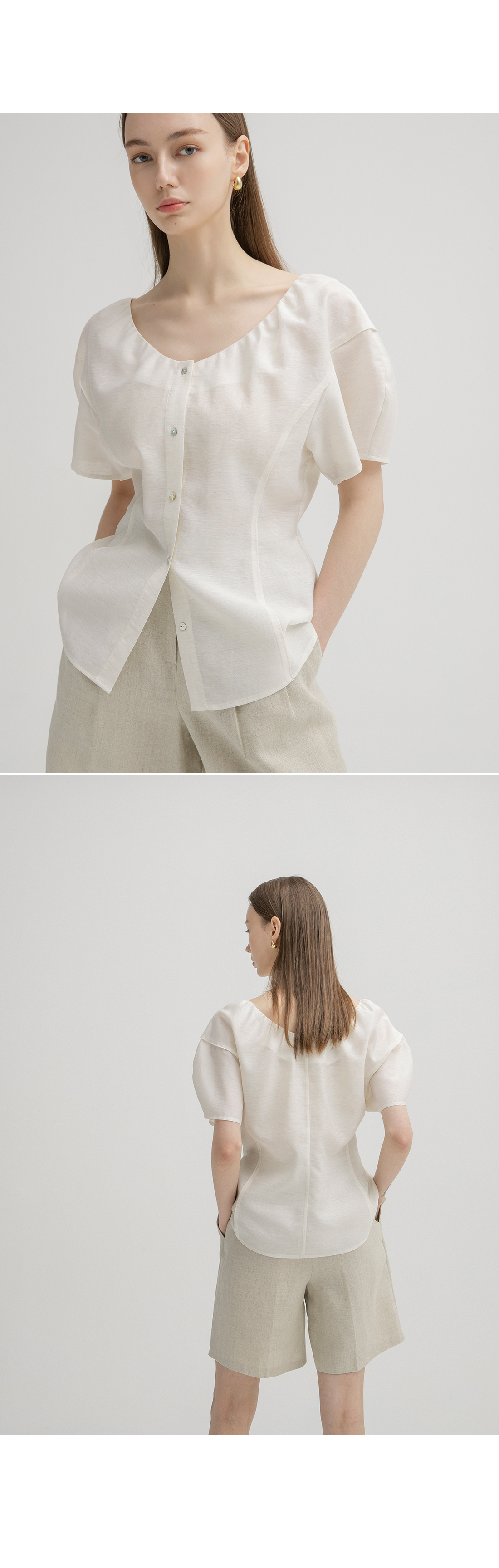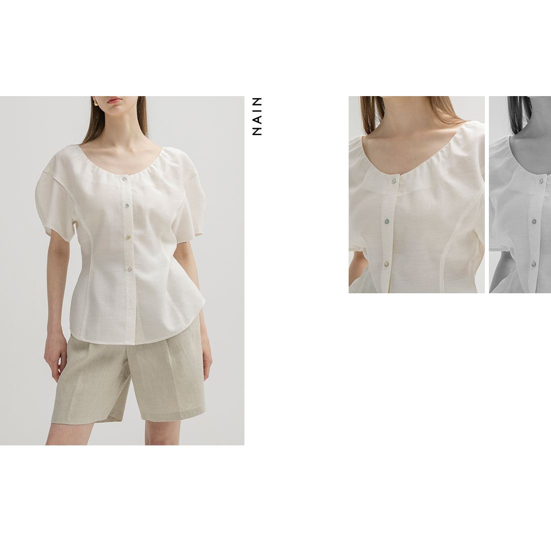肩幅 : 50.4 バスト : 48.6 着丈 : 62.8 袖幅断面 : 17.5 袖丈 : 19.3 ウエスト : 40 裾周り : 51.4