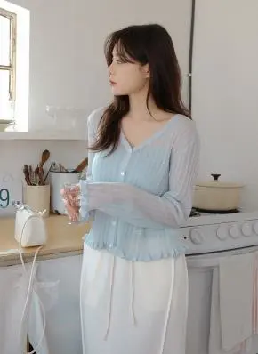 1番上のモデルさんの着用しているカラーは[sky blue]でございます。