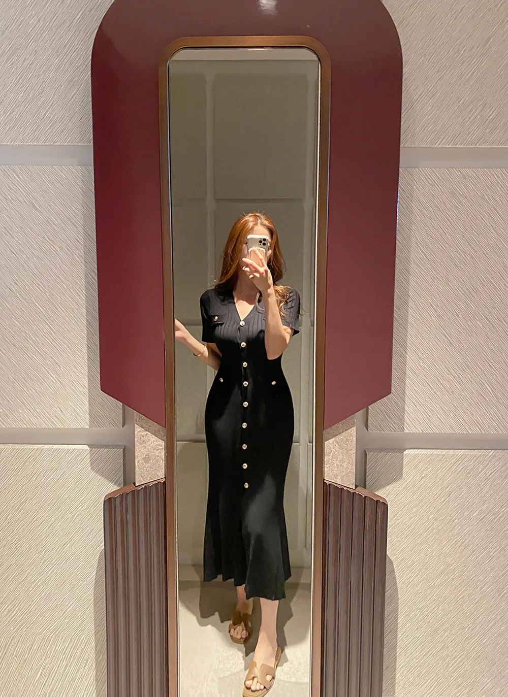 肩幅 : 30 バスト : 32 着丈 : 117 袖幅 : 8.5 袖丈 : 20 ウエスト : 26.5 ヒップ : 32 裾周り : 60.5 スリット : 37.5