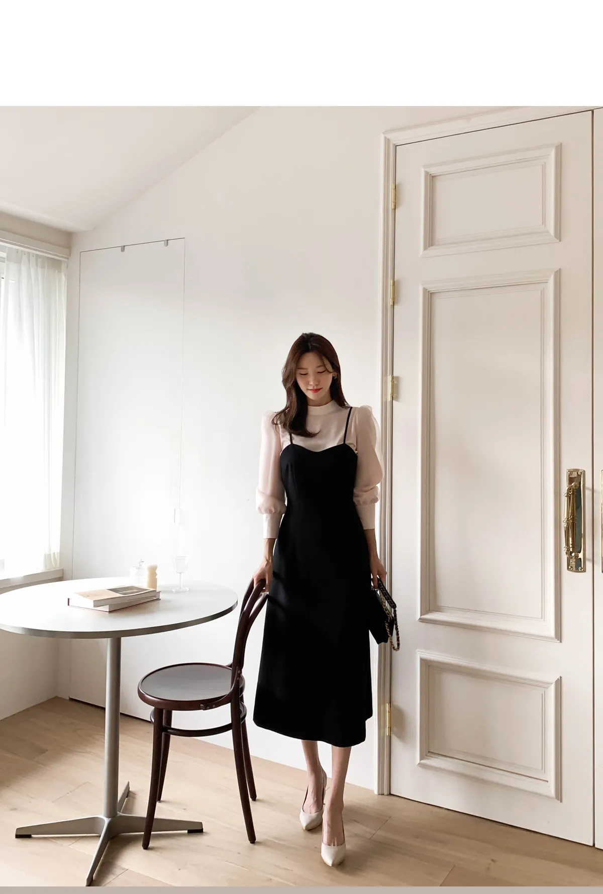 肩幅 : 28 バスト : 46.5 着丈(肩ひも含む) : 121 アームホール : 24 ウエスト : 38.5