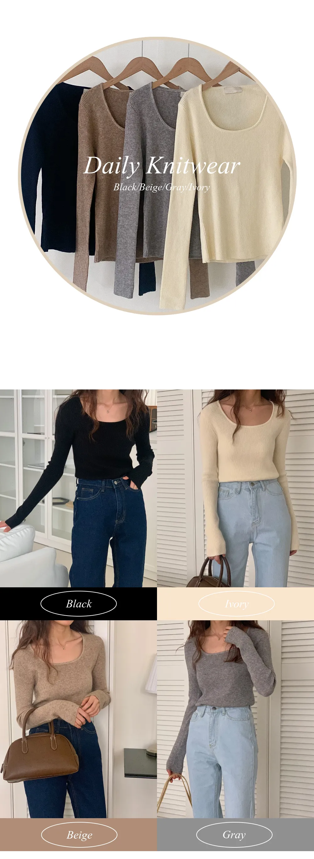 着用 : Ivory / FREE,Beige / FREE,Black / FREE,Gray / FREE