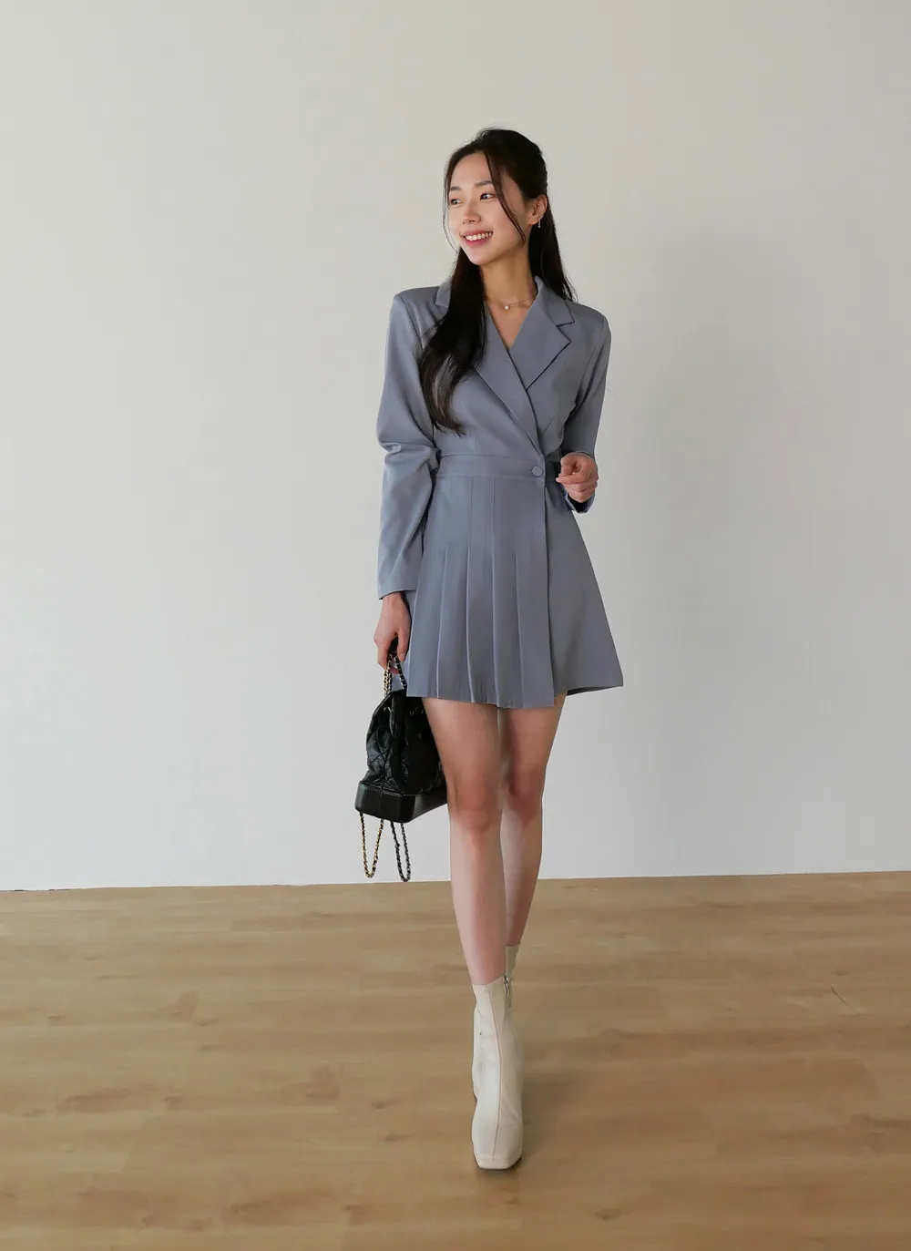 ・テーラードカラー ・長袖 ・腰下サイドプリーツ
