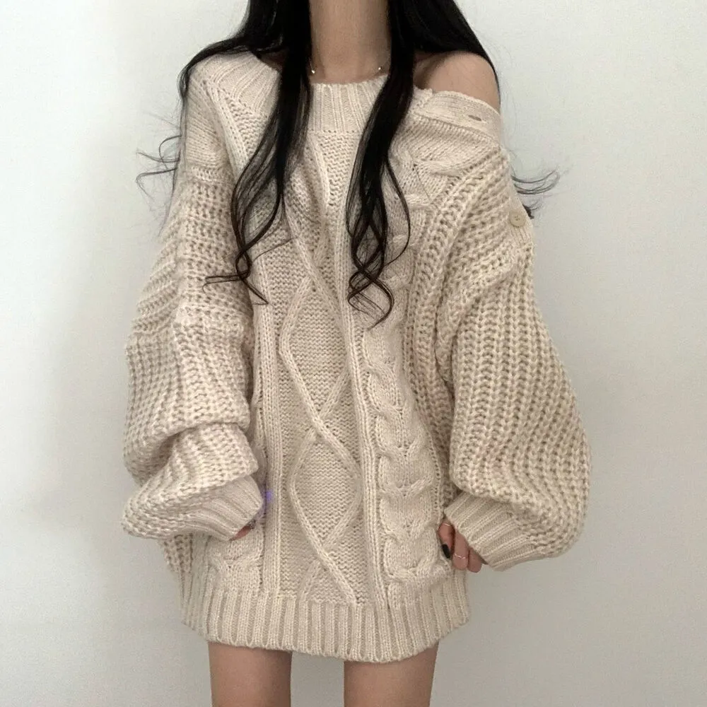 ・ラウンドネック ・ケーブル編み