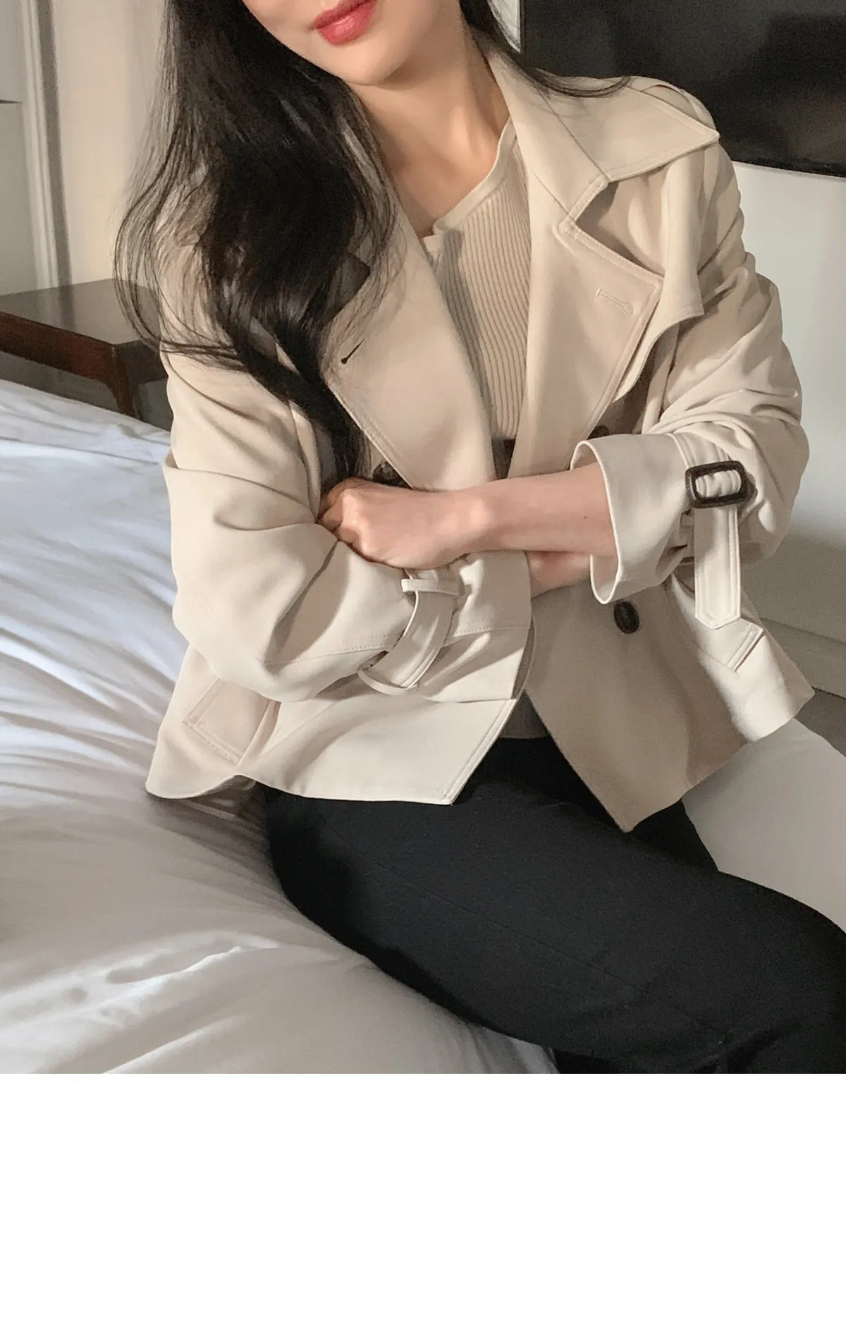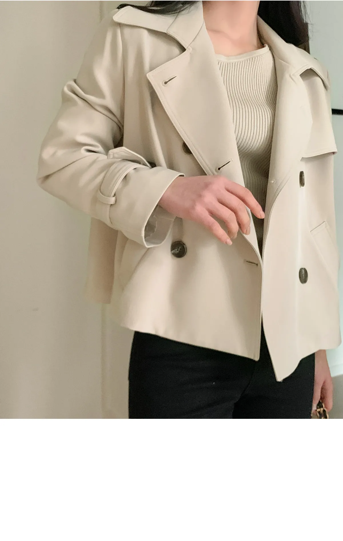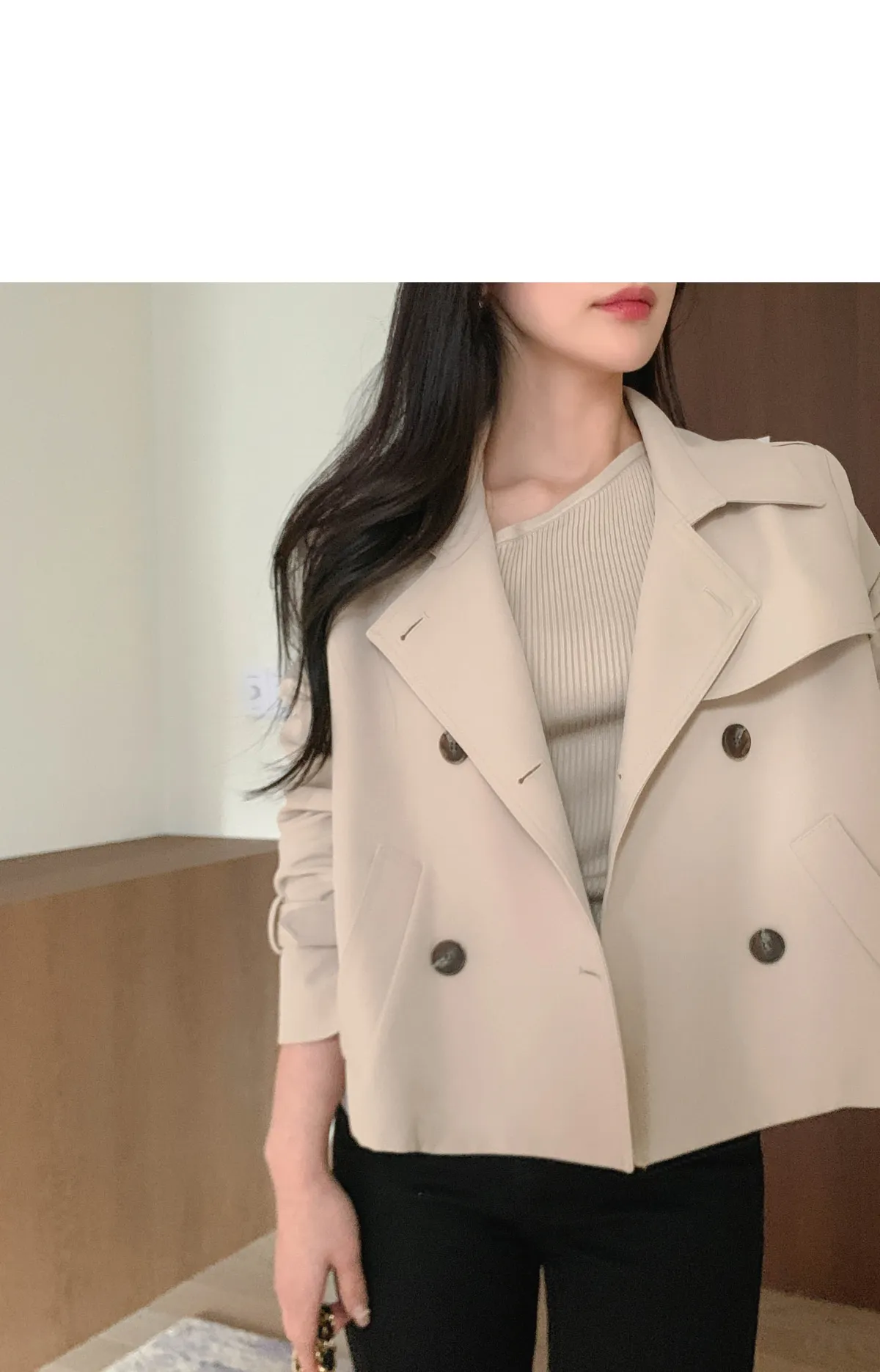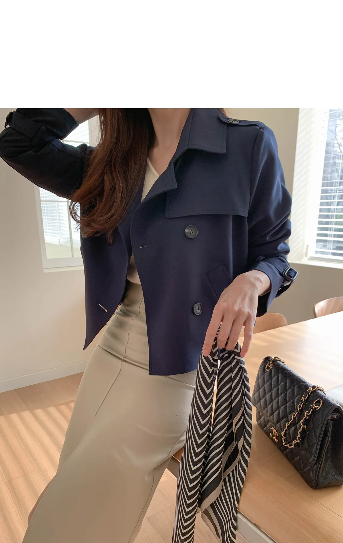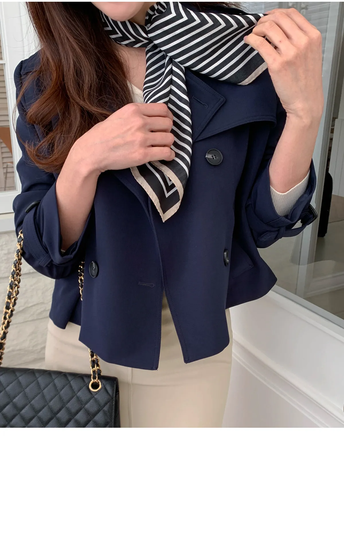 - ジャケットのように軽く羽織れるクロップド着丈
