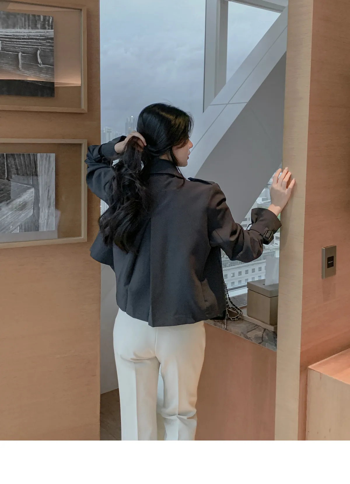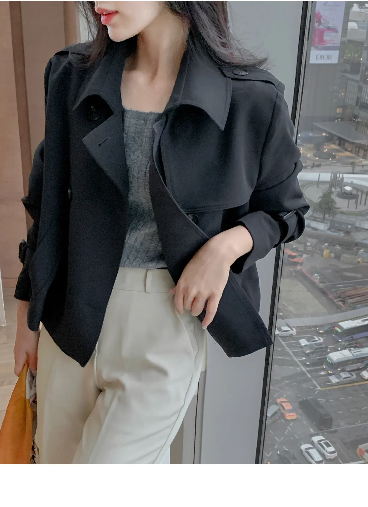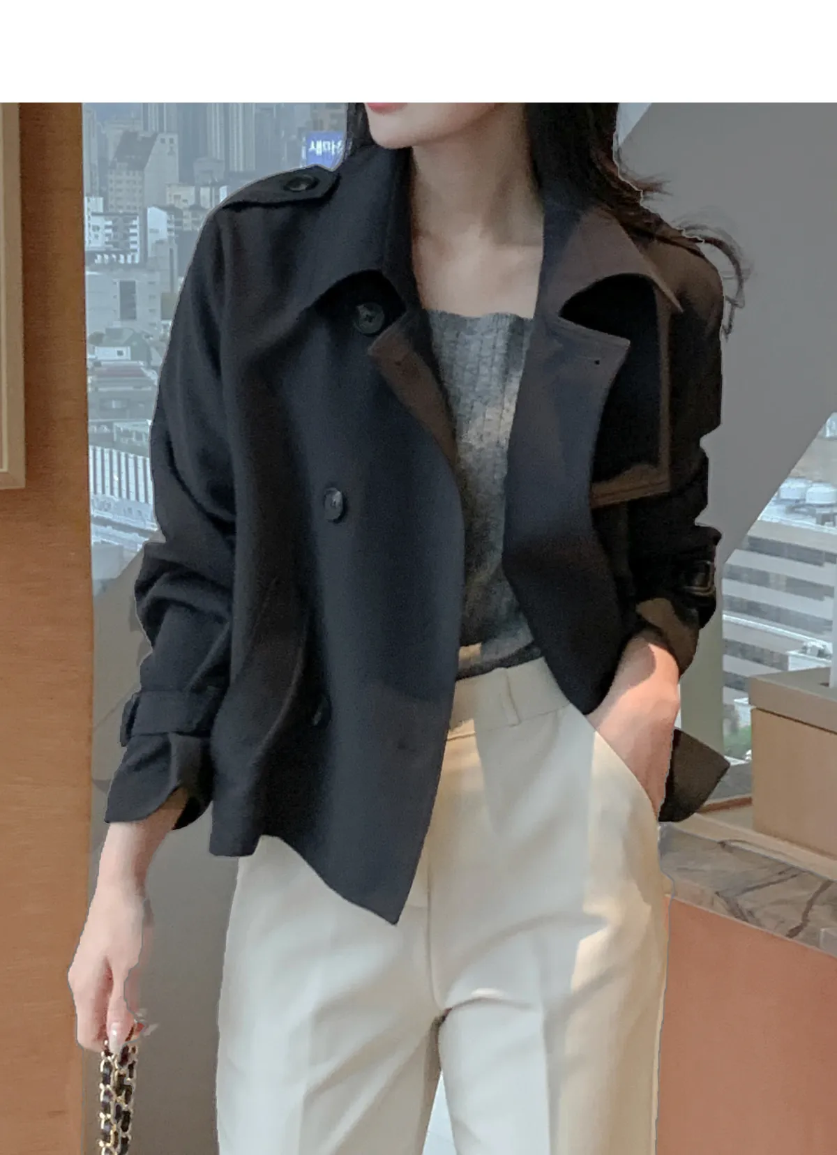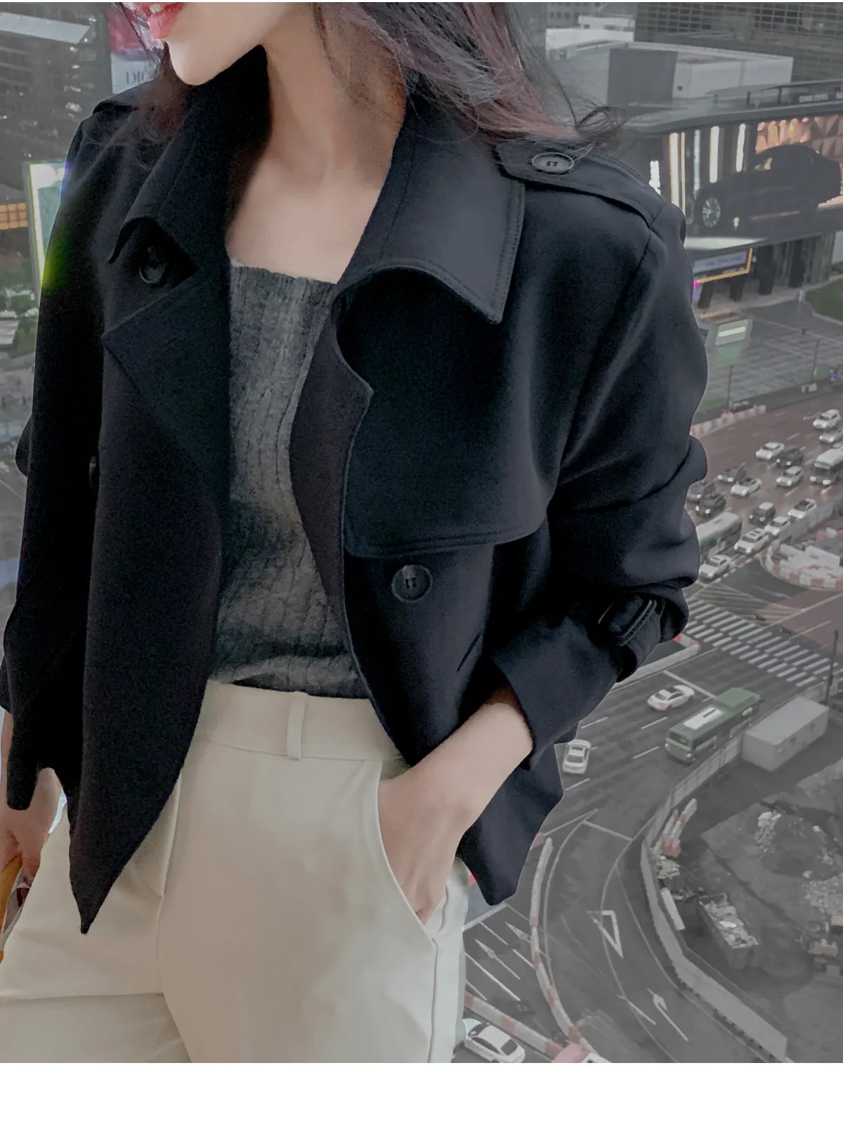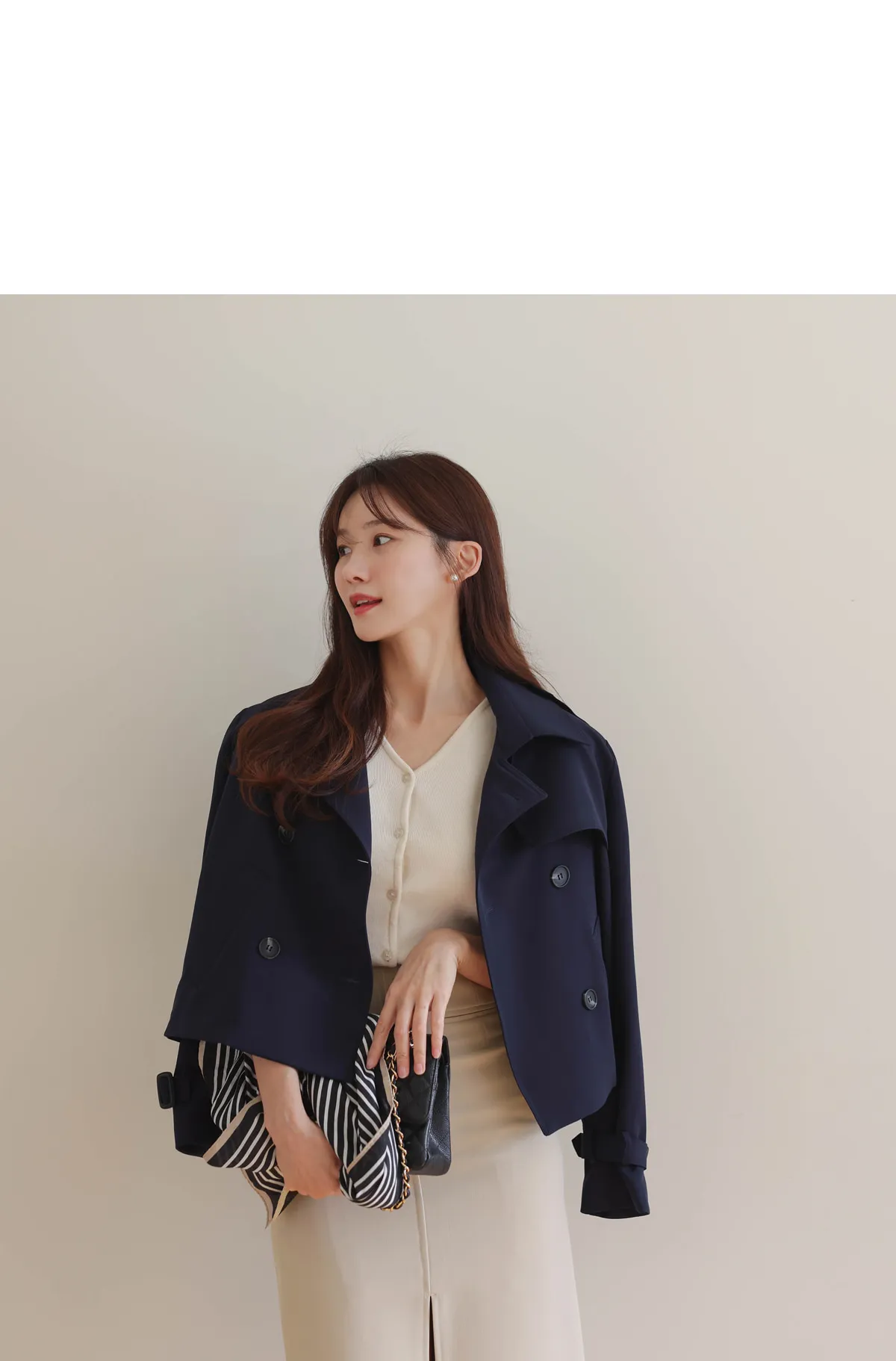 - ジャケットのように軽く羽織れるクロップド着丈