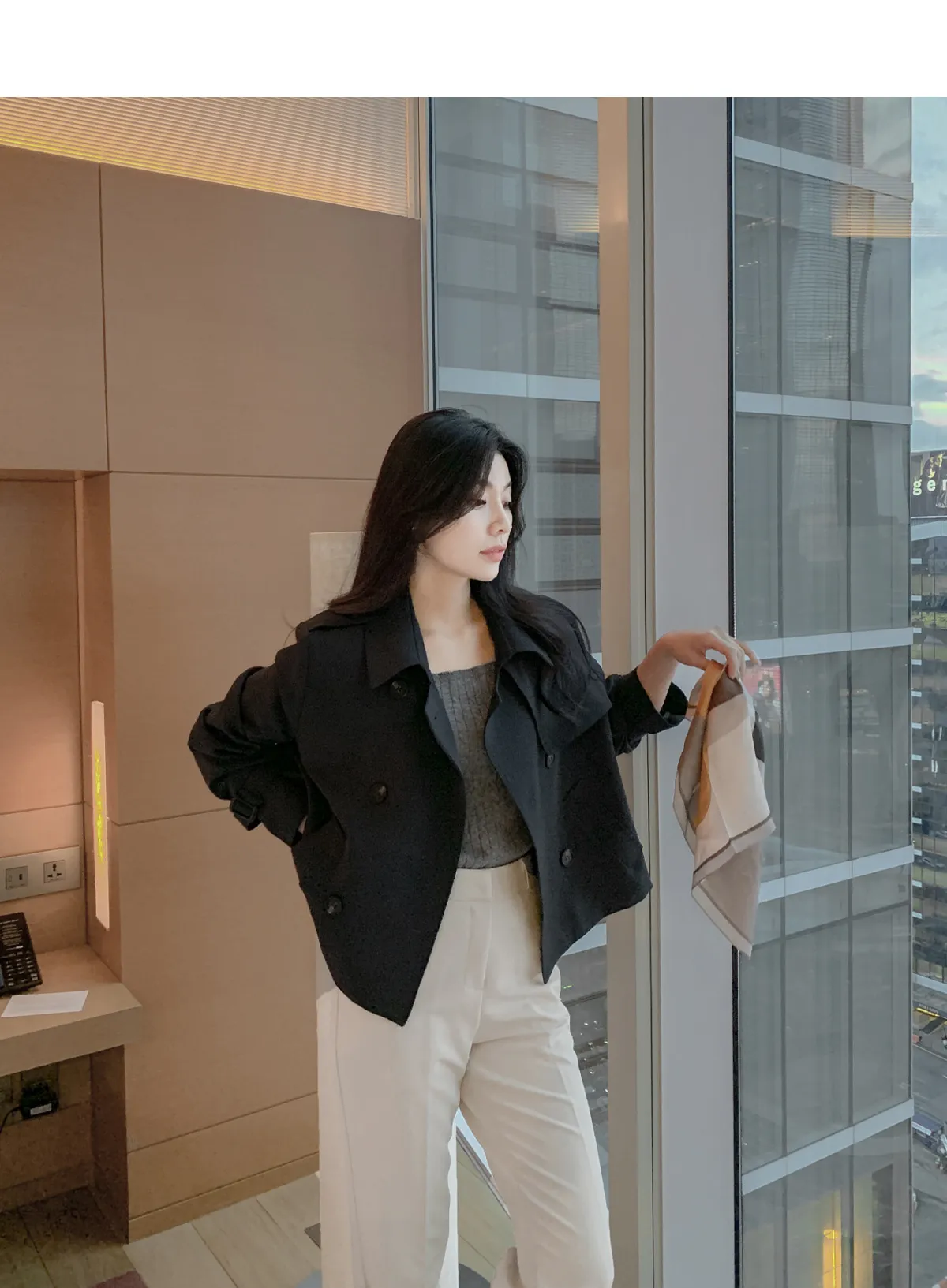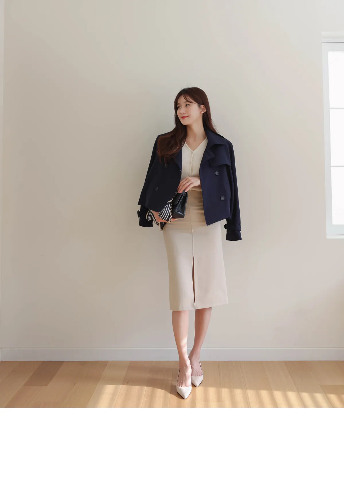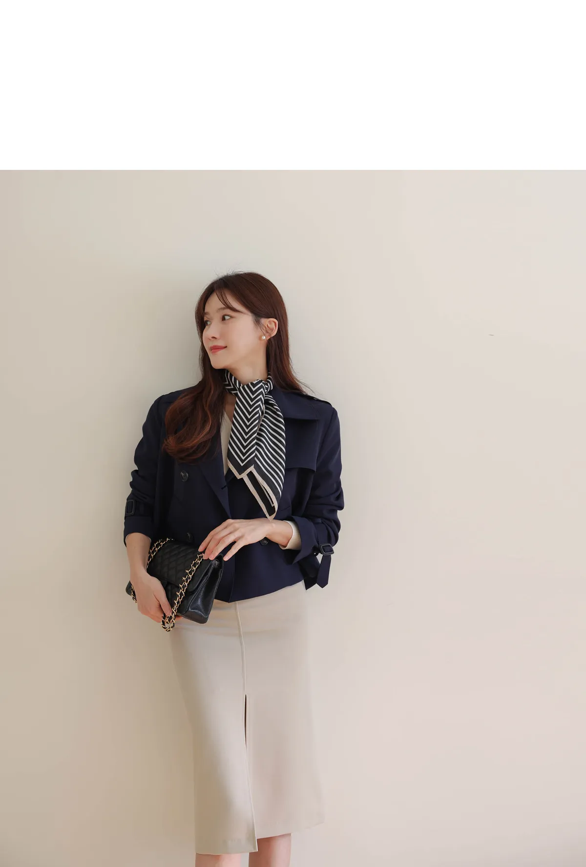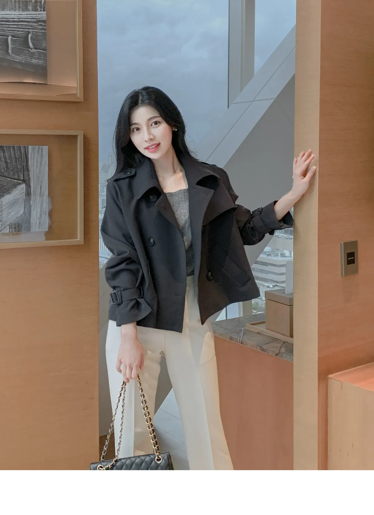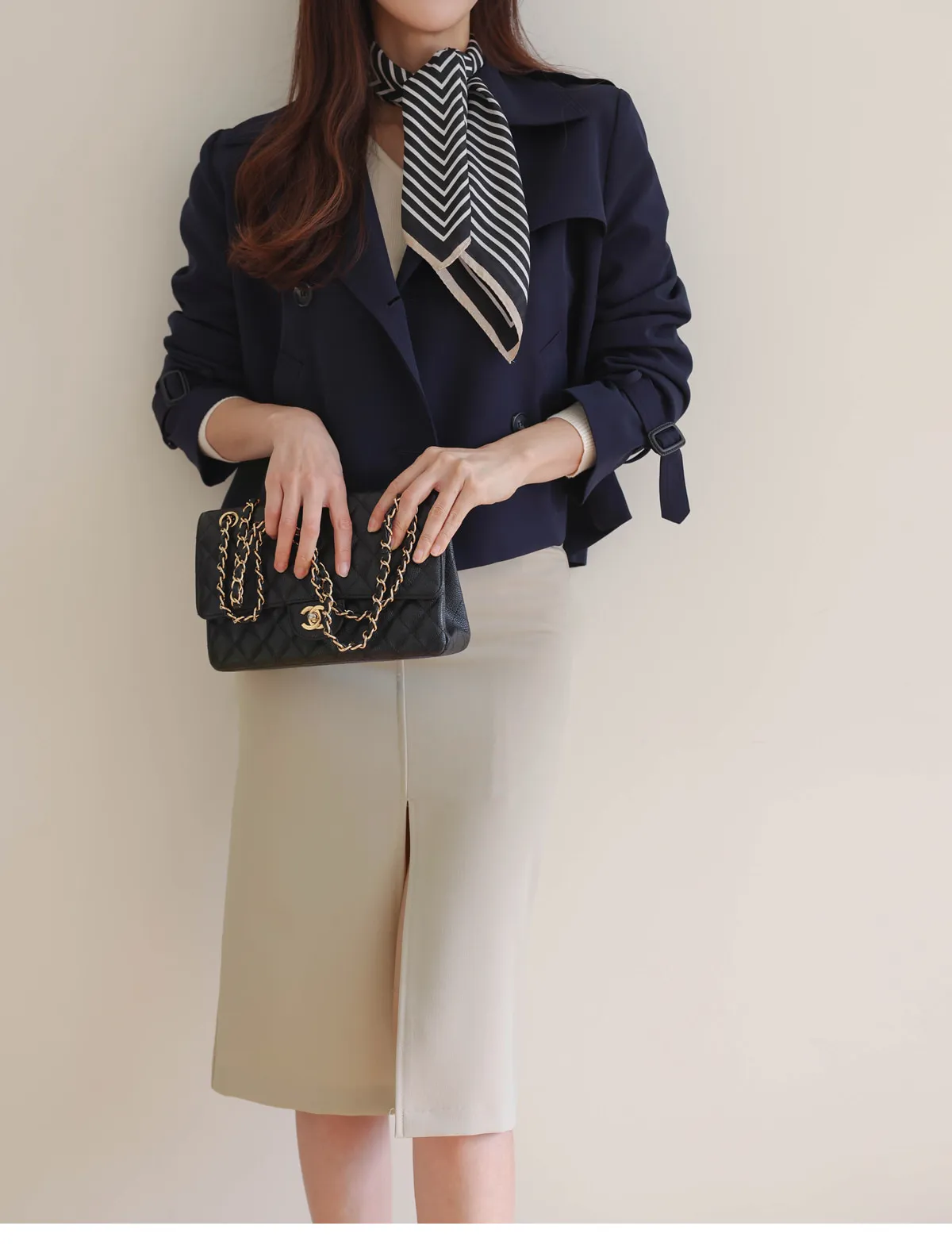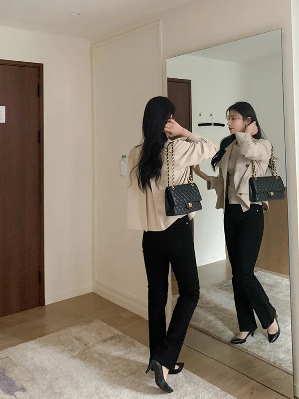 - ジャケットのように軽く羽織れるクロップド着丈