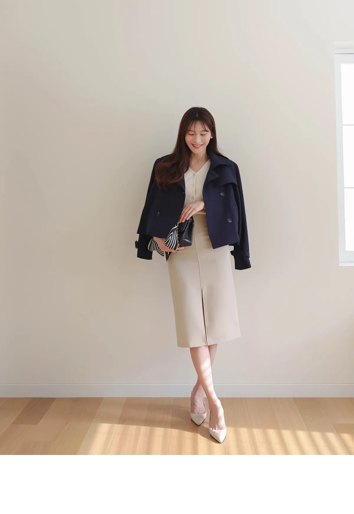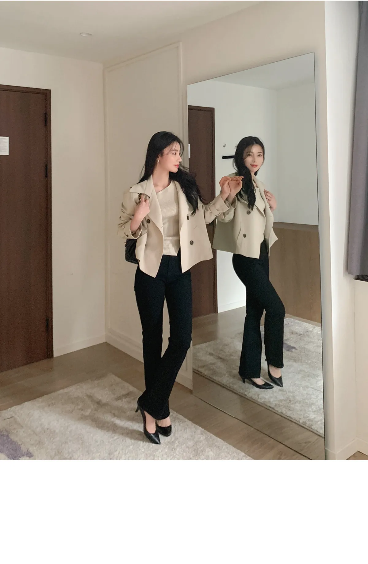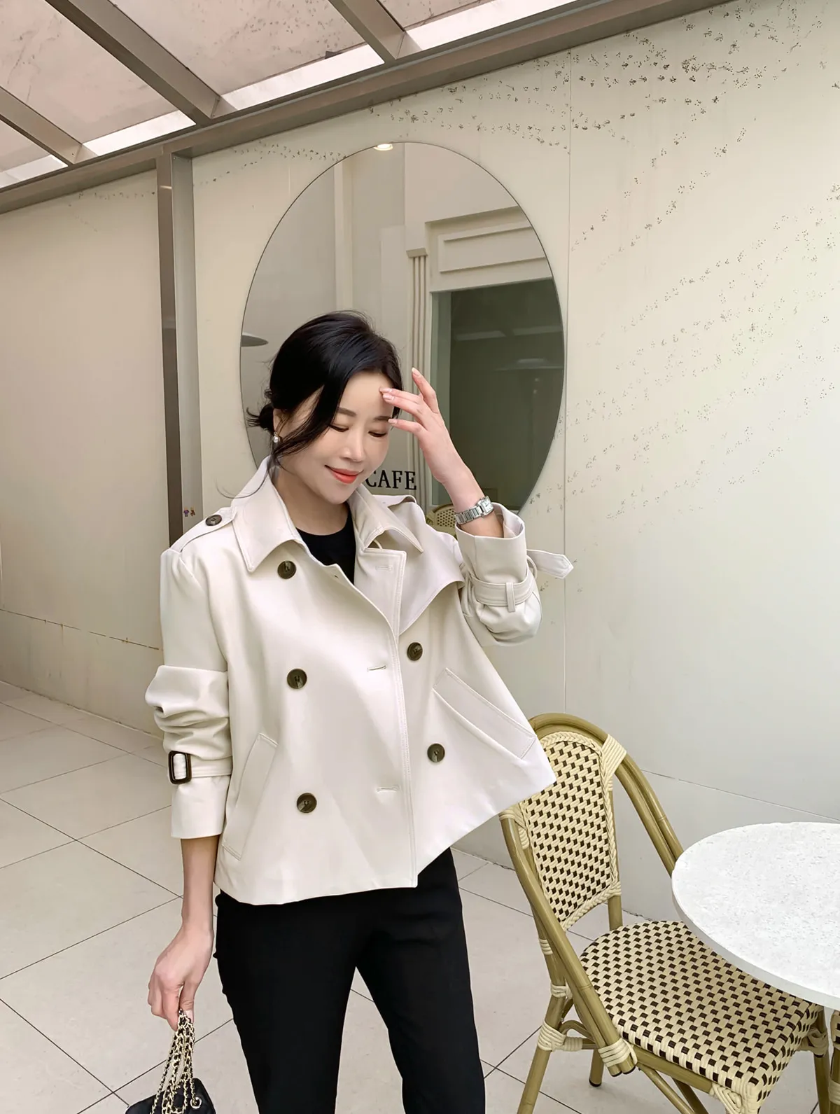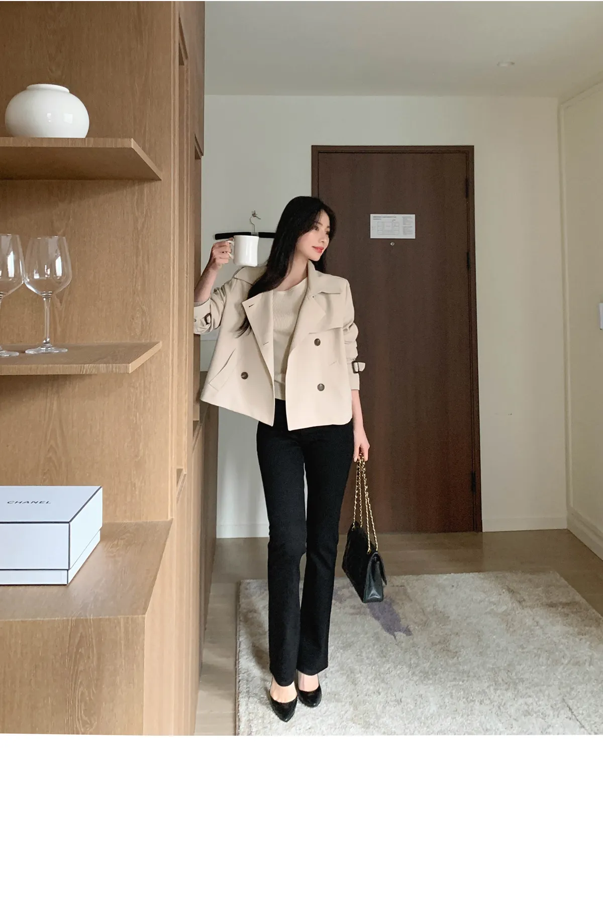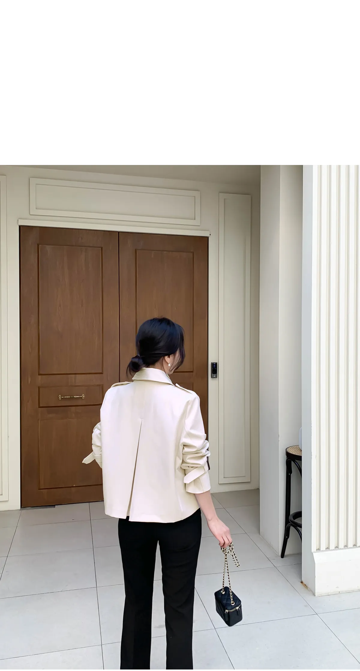 - ジャケットのように軽く羽織れるクロップド着丈