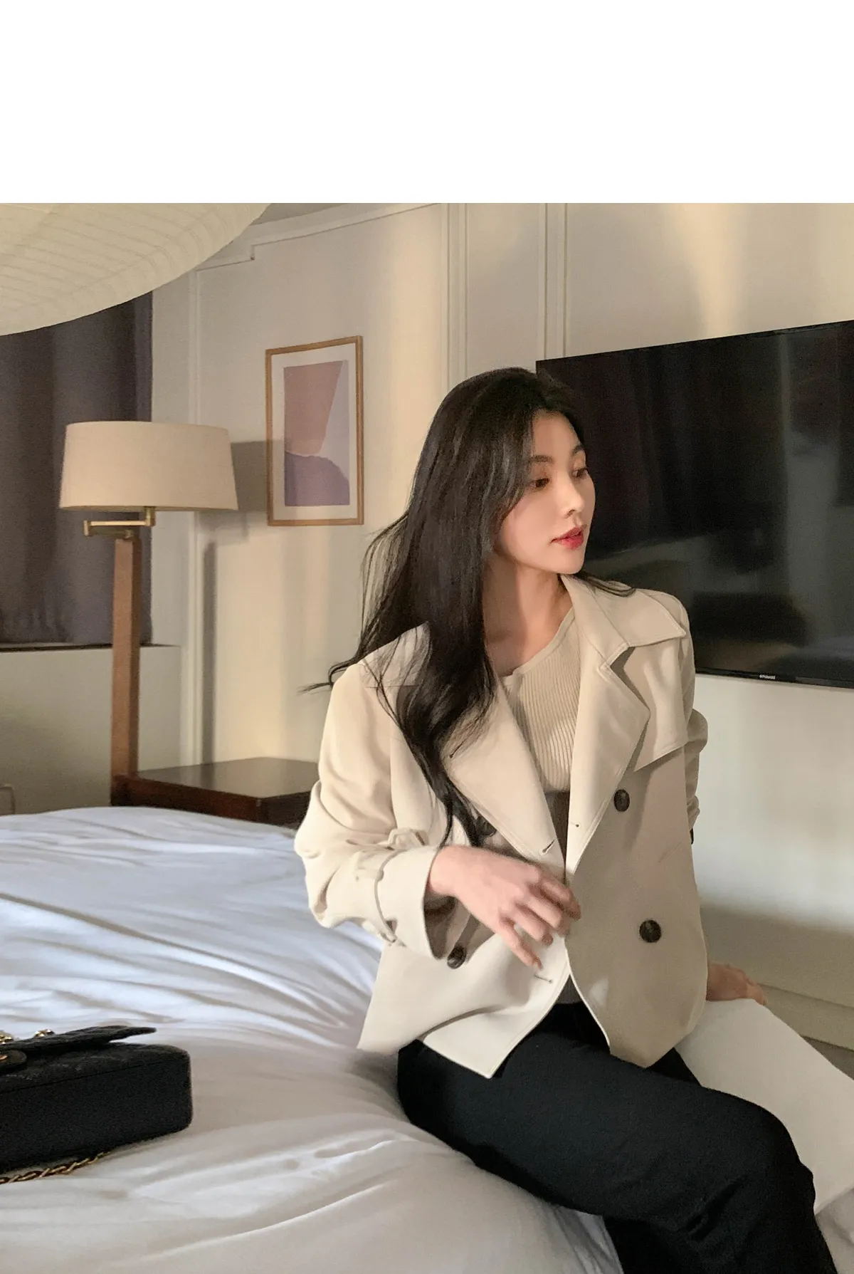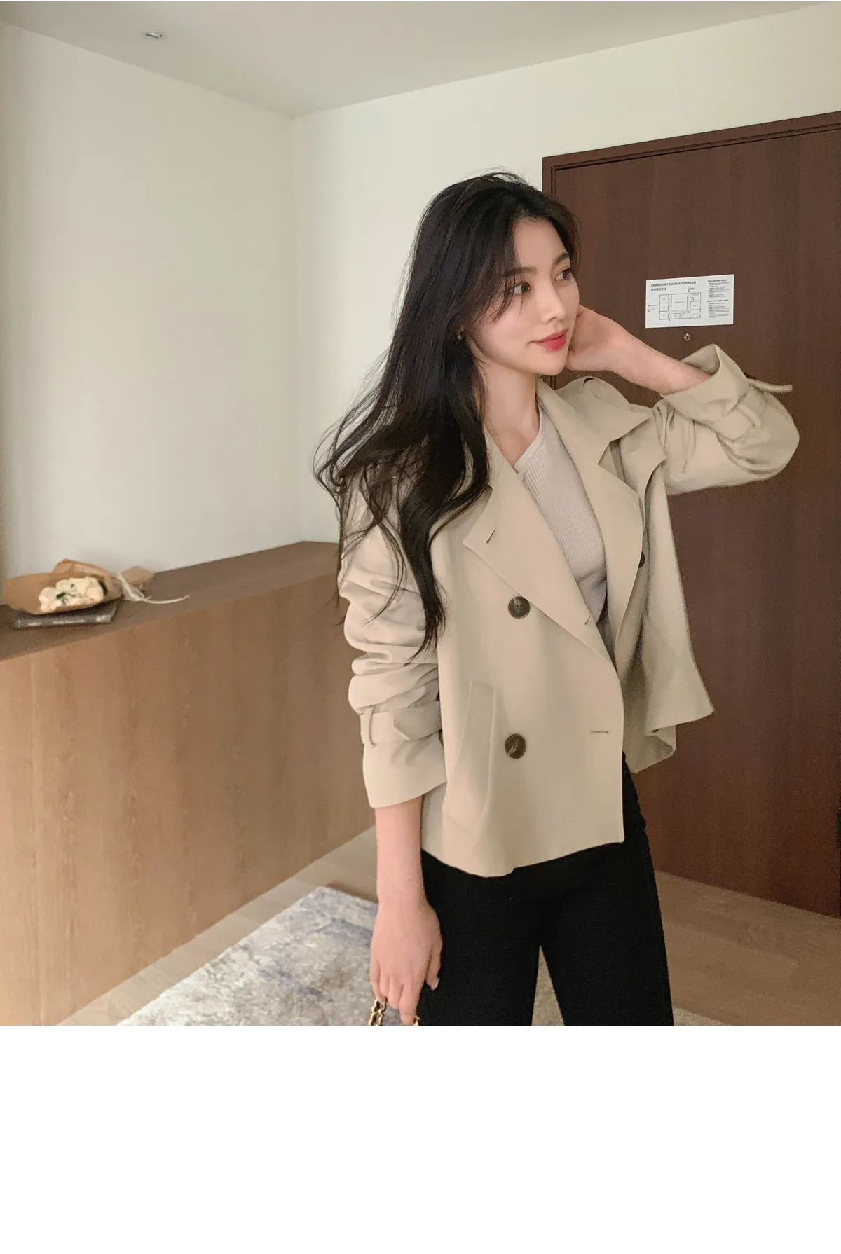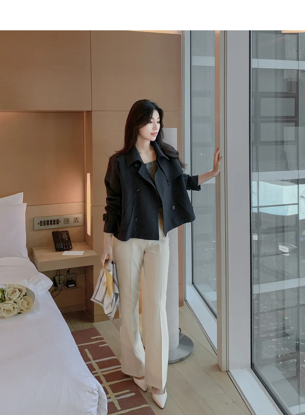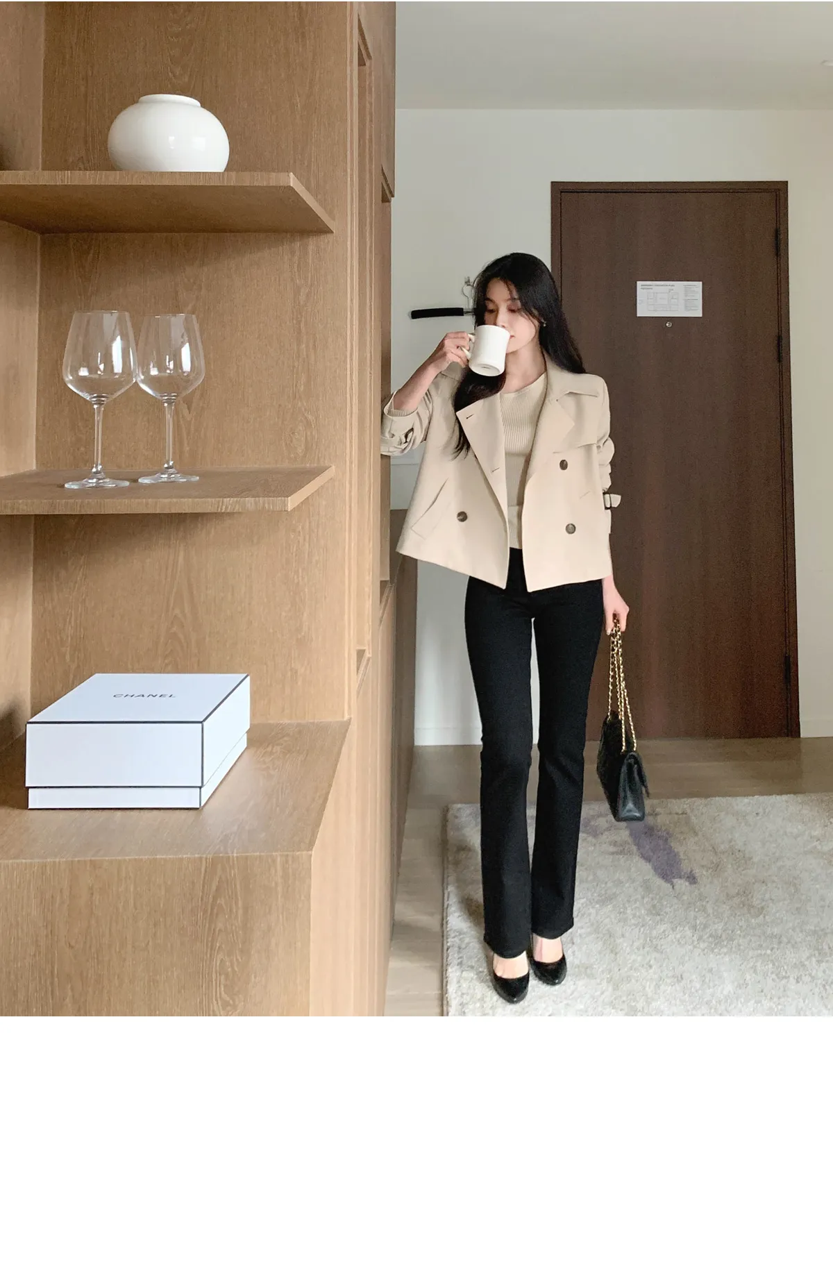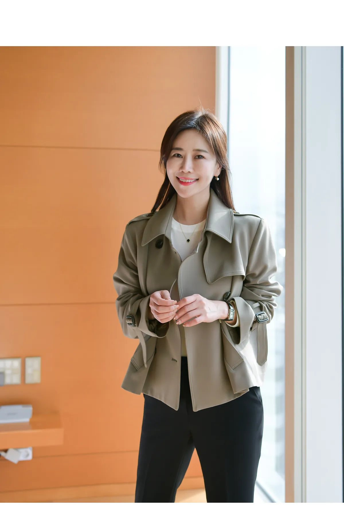 - ジャケットのように軽く羽織れるクロップド着丈
