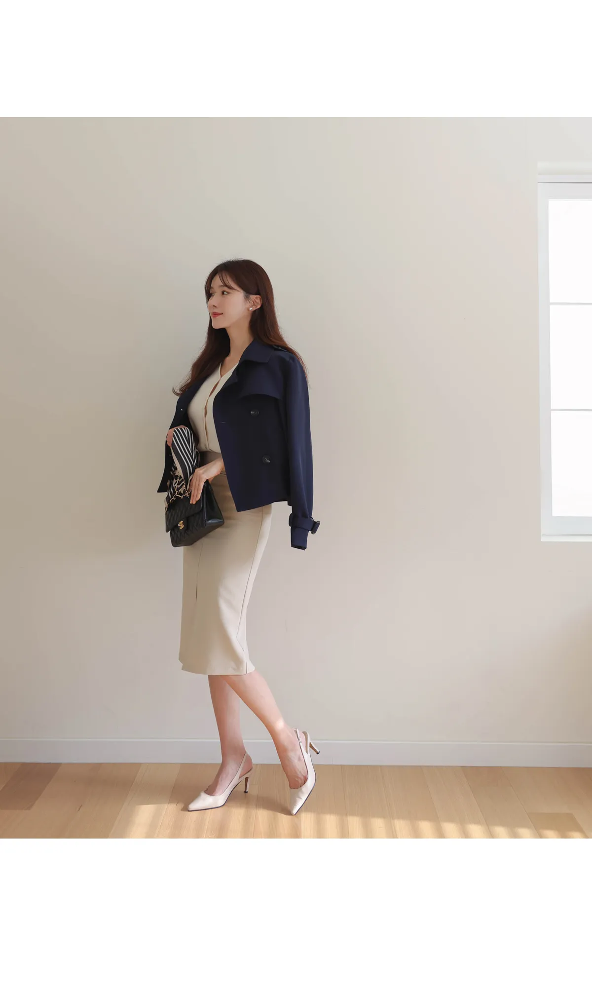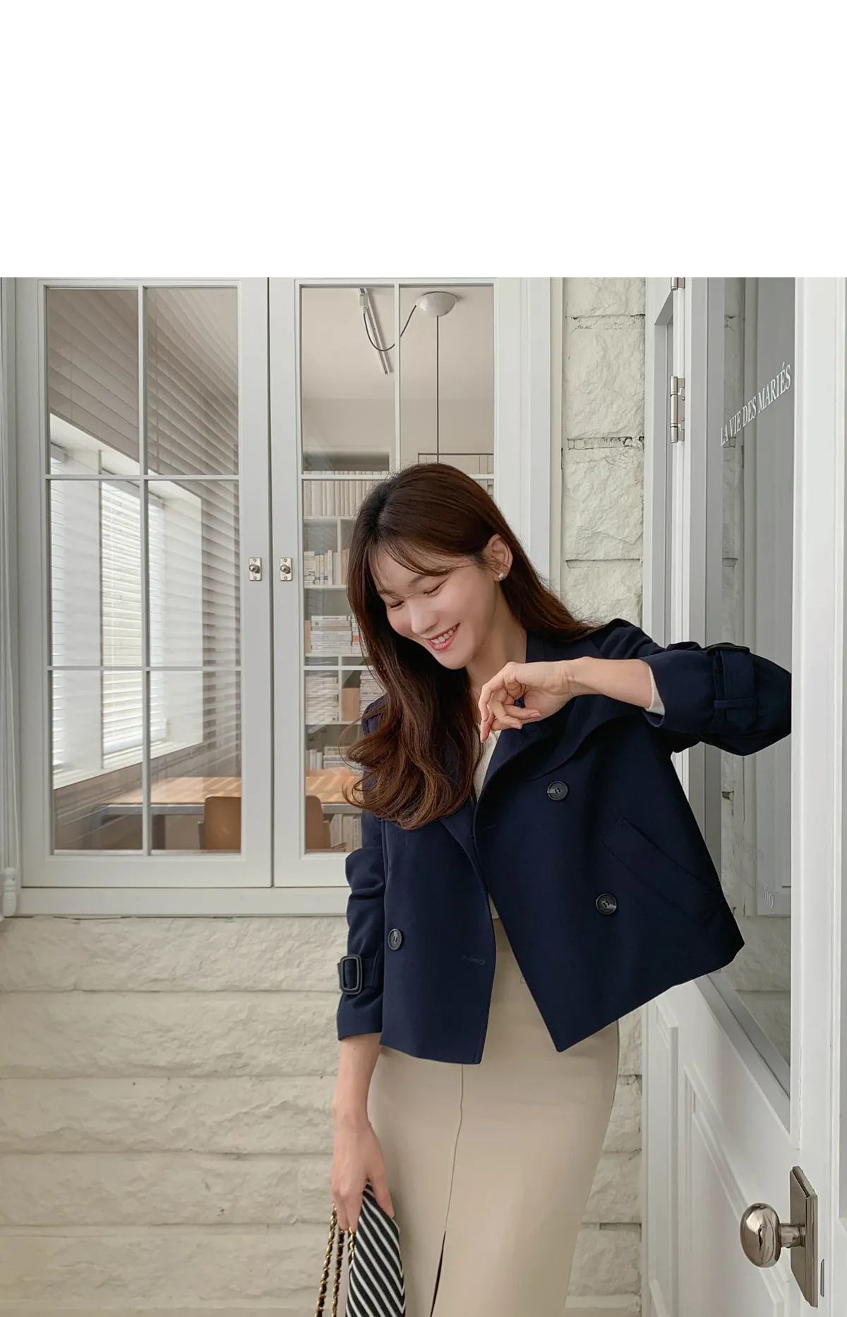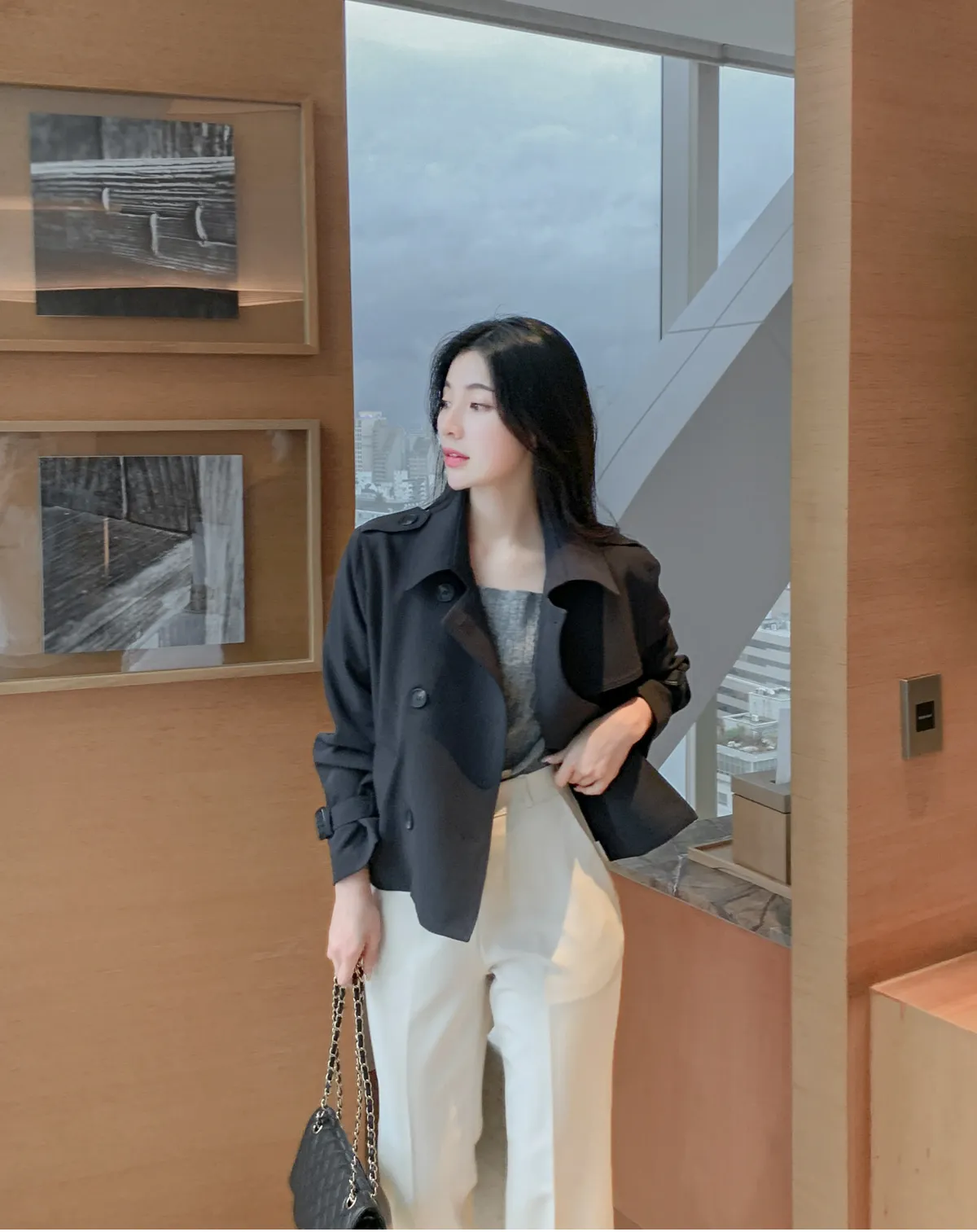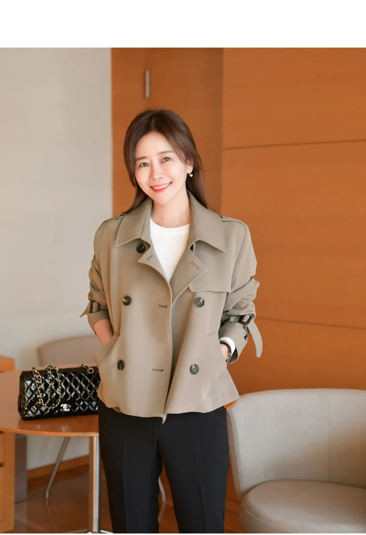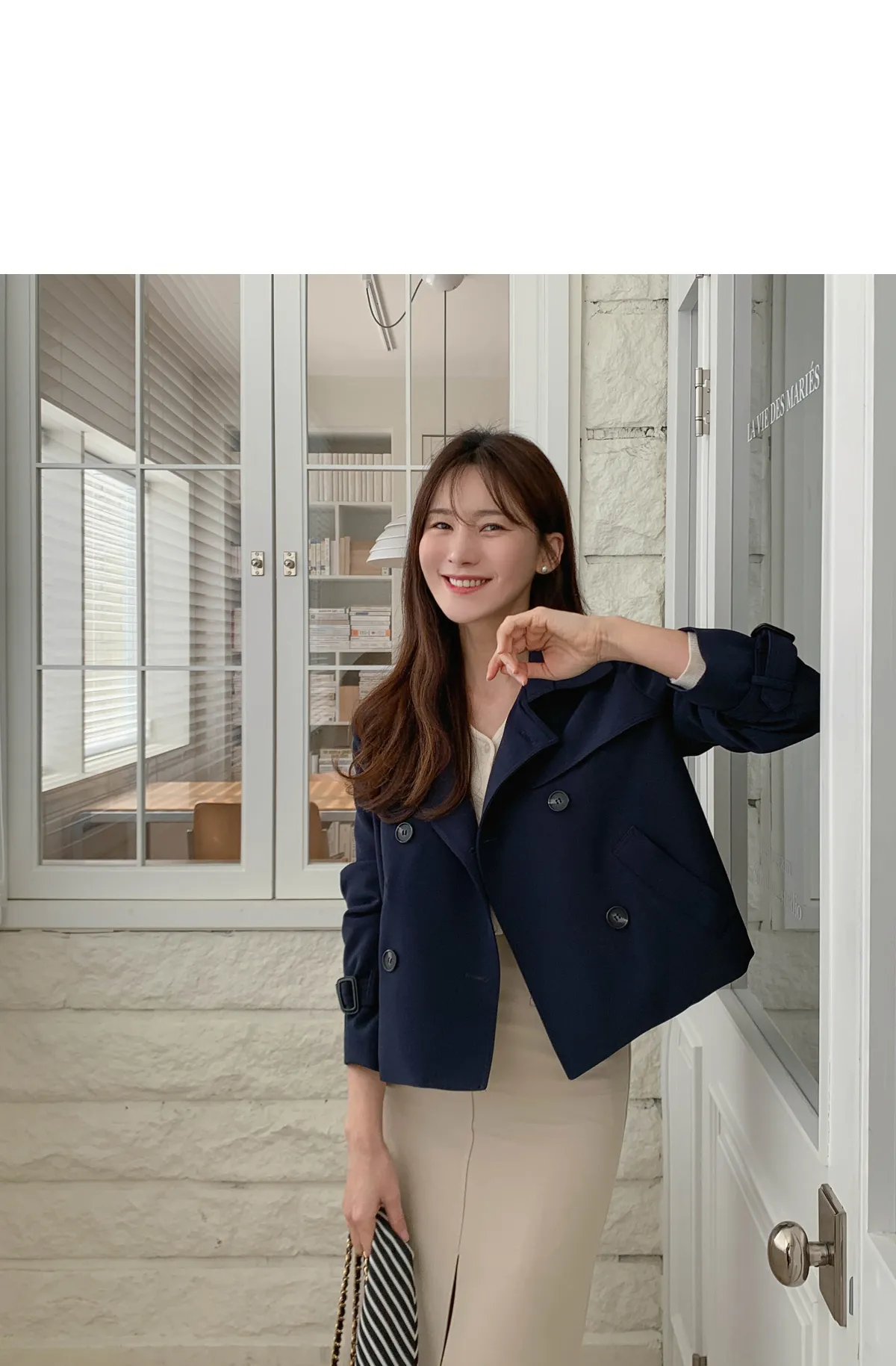 - ジャケットのように軽く羽織れるクロップド着丈