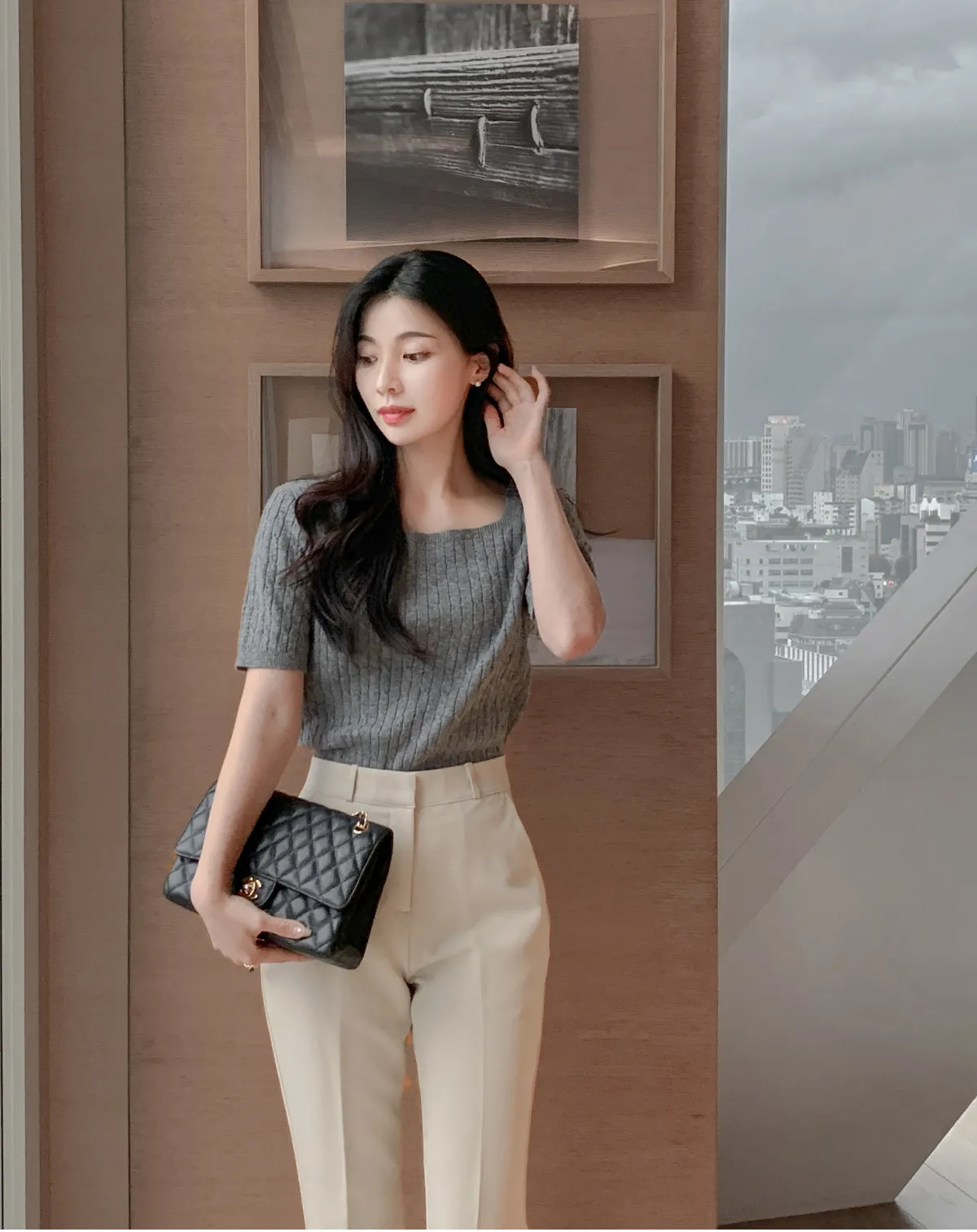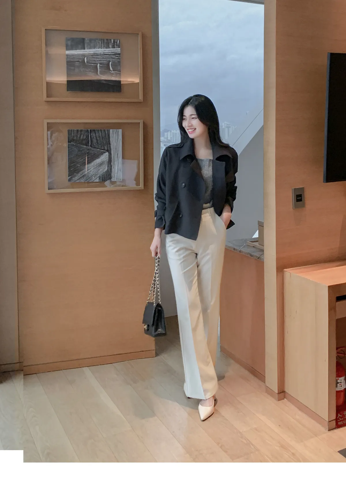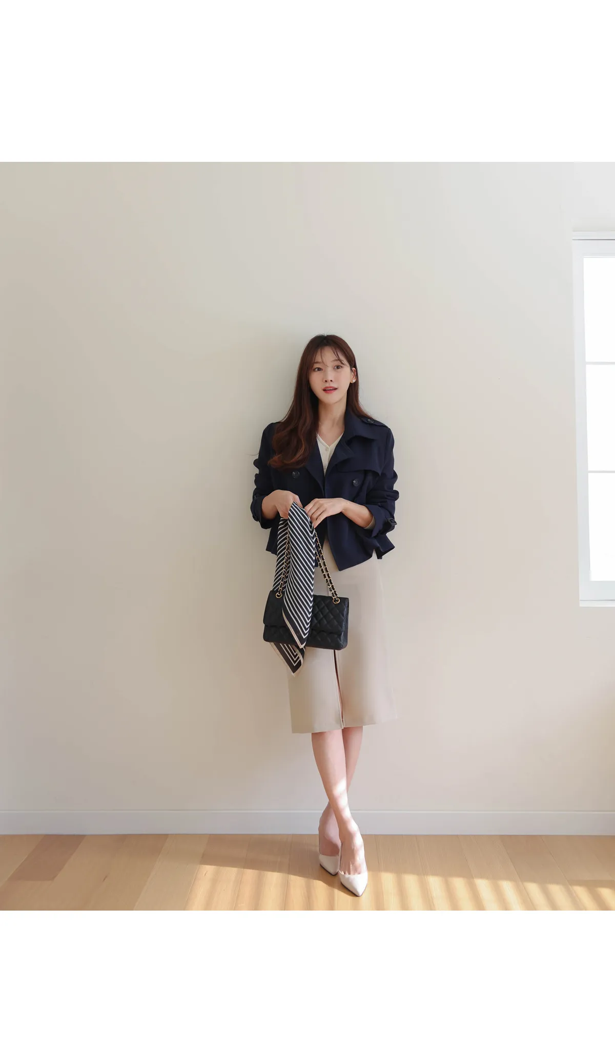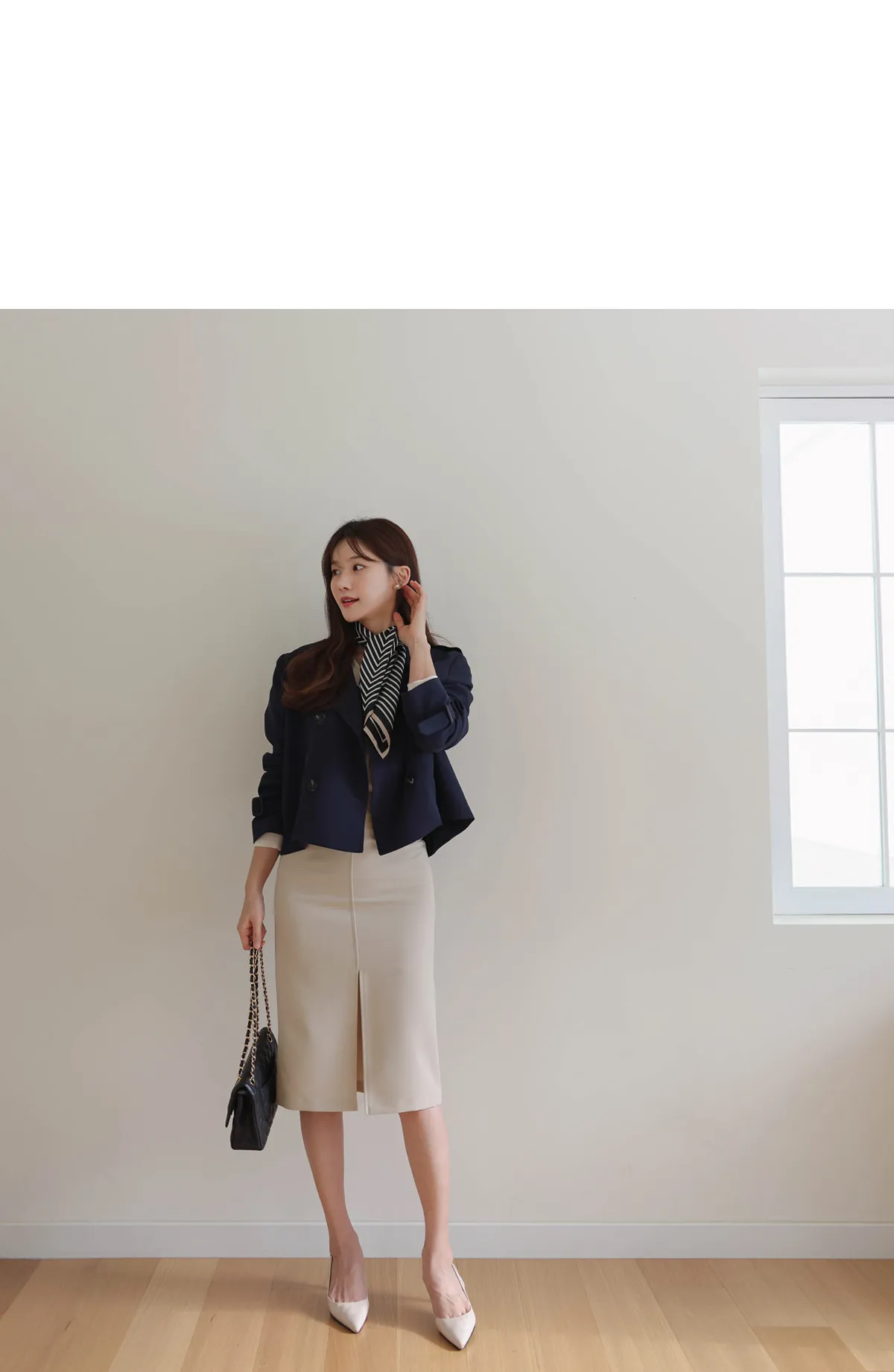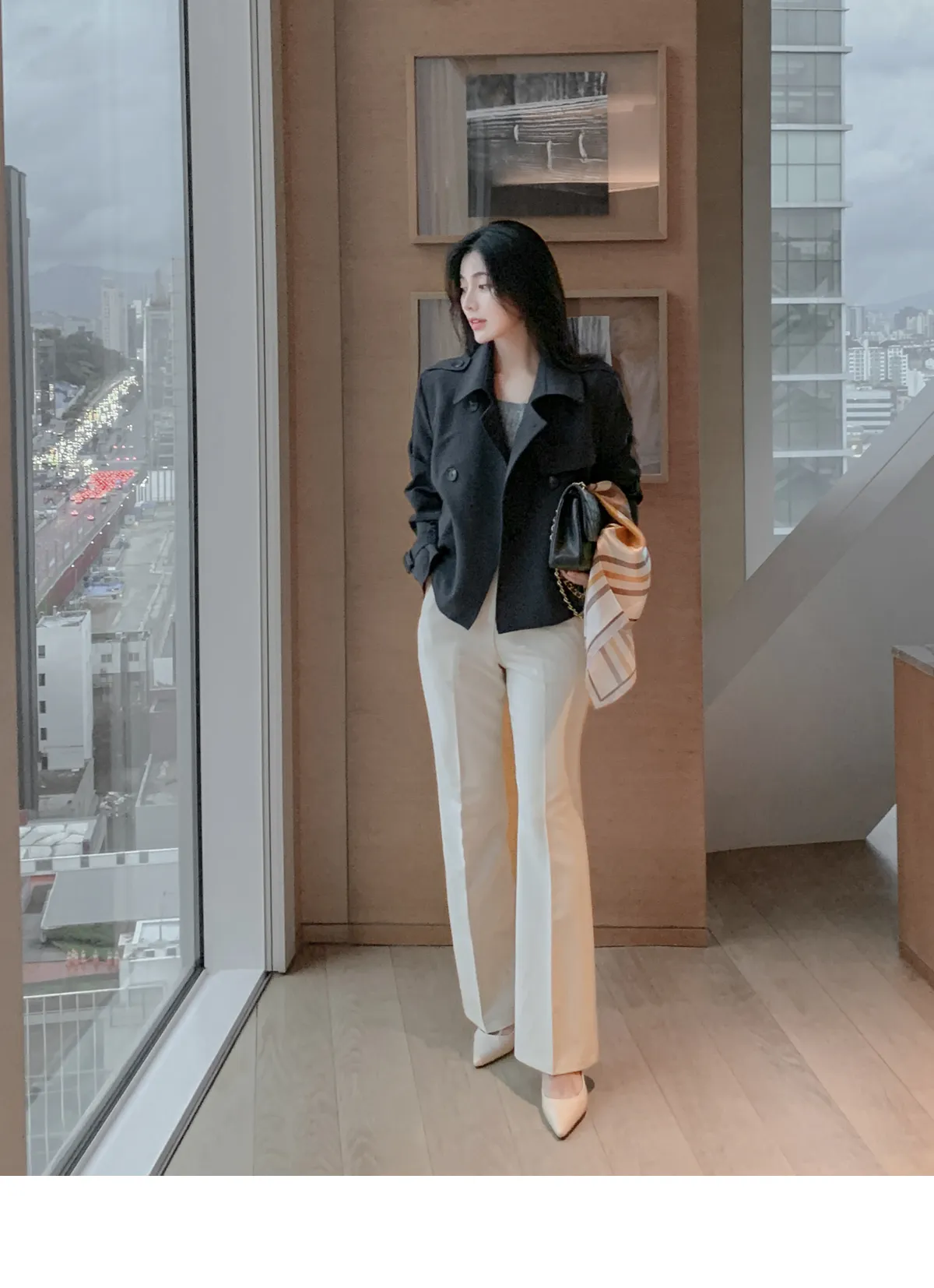 - ジャケットのように軽く羽織れるクロップド着丈