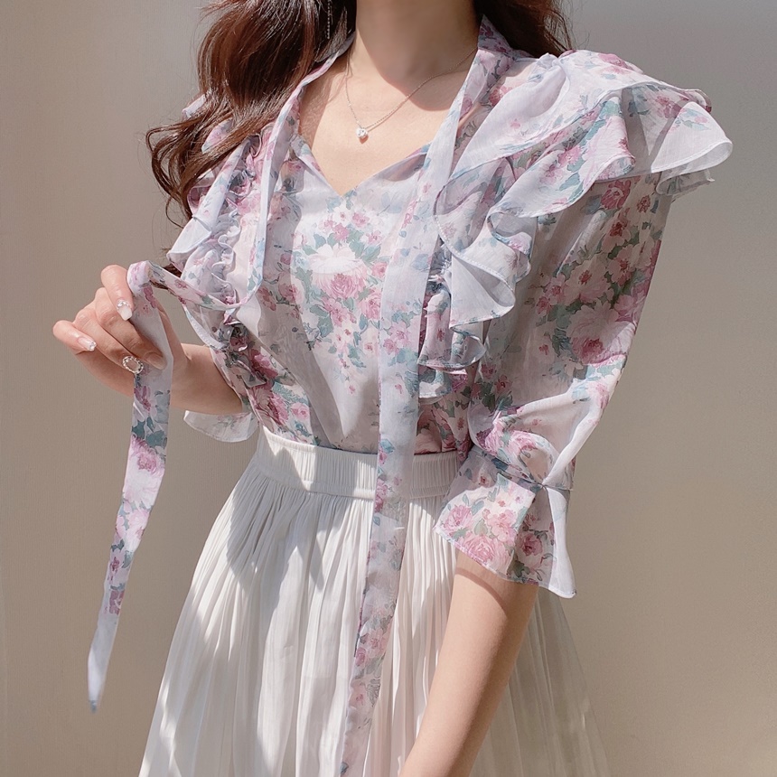 ・フリルディテール ・Vネック