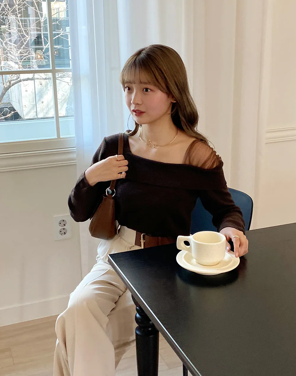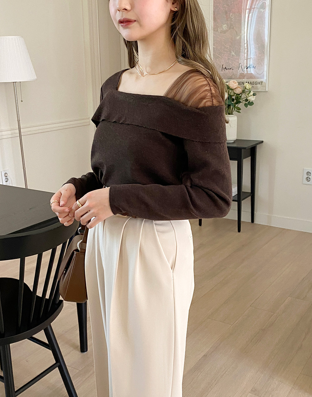 肩のディテールがシアー素材になっていて