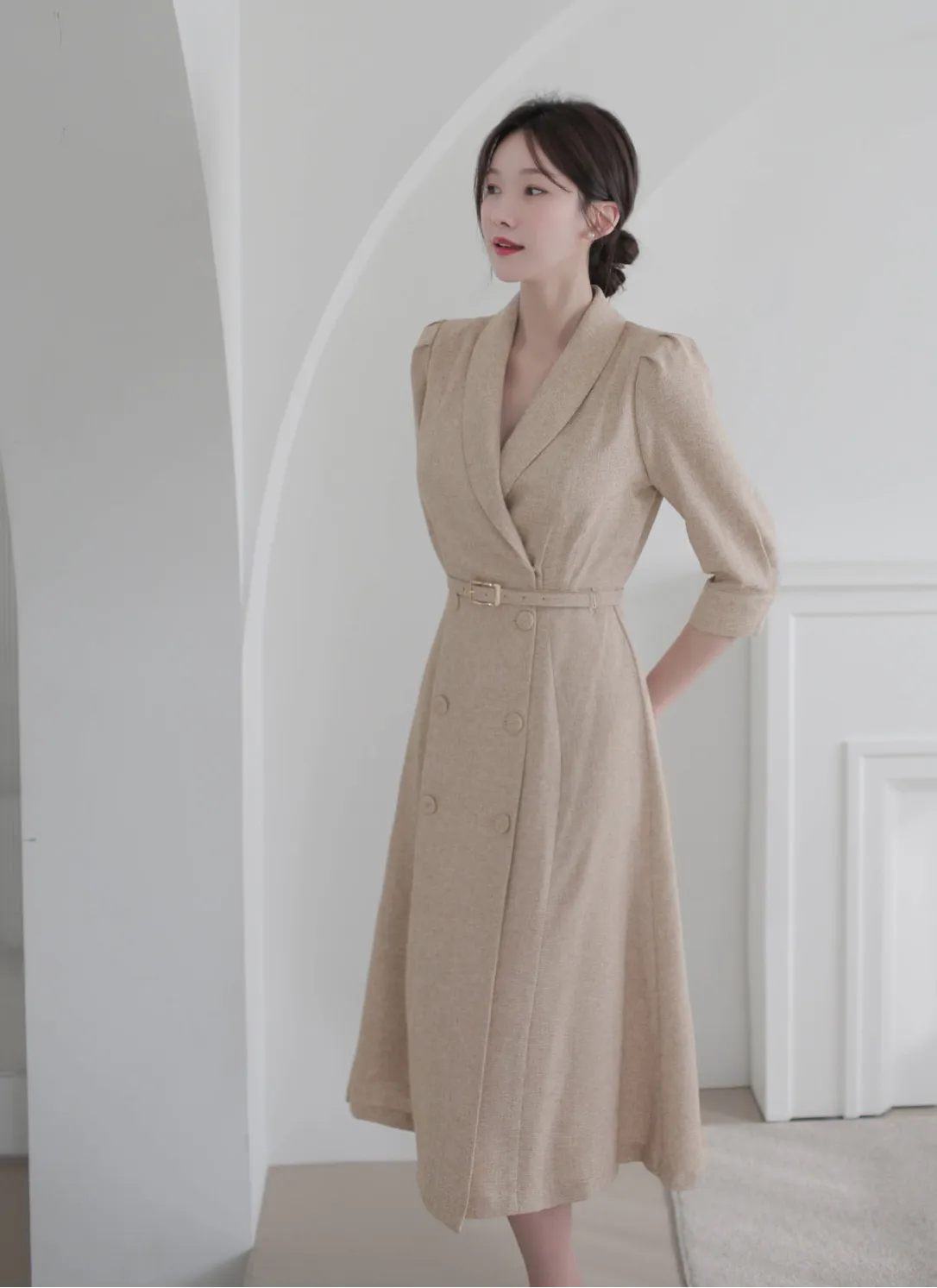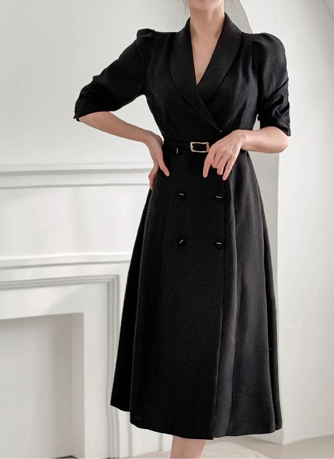 ラップスタイルのダブルボタンは開閉可能で