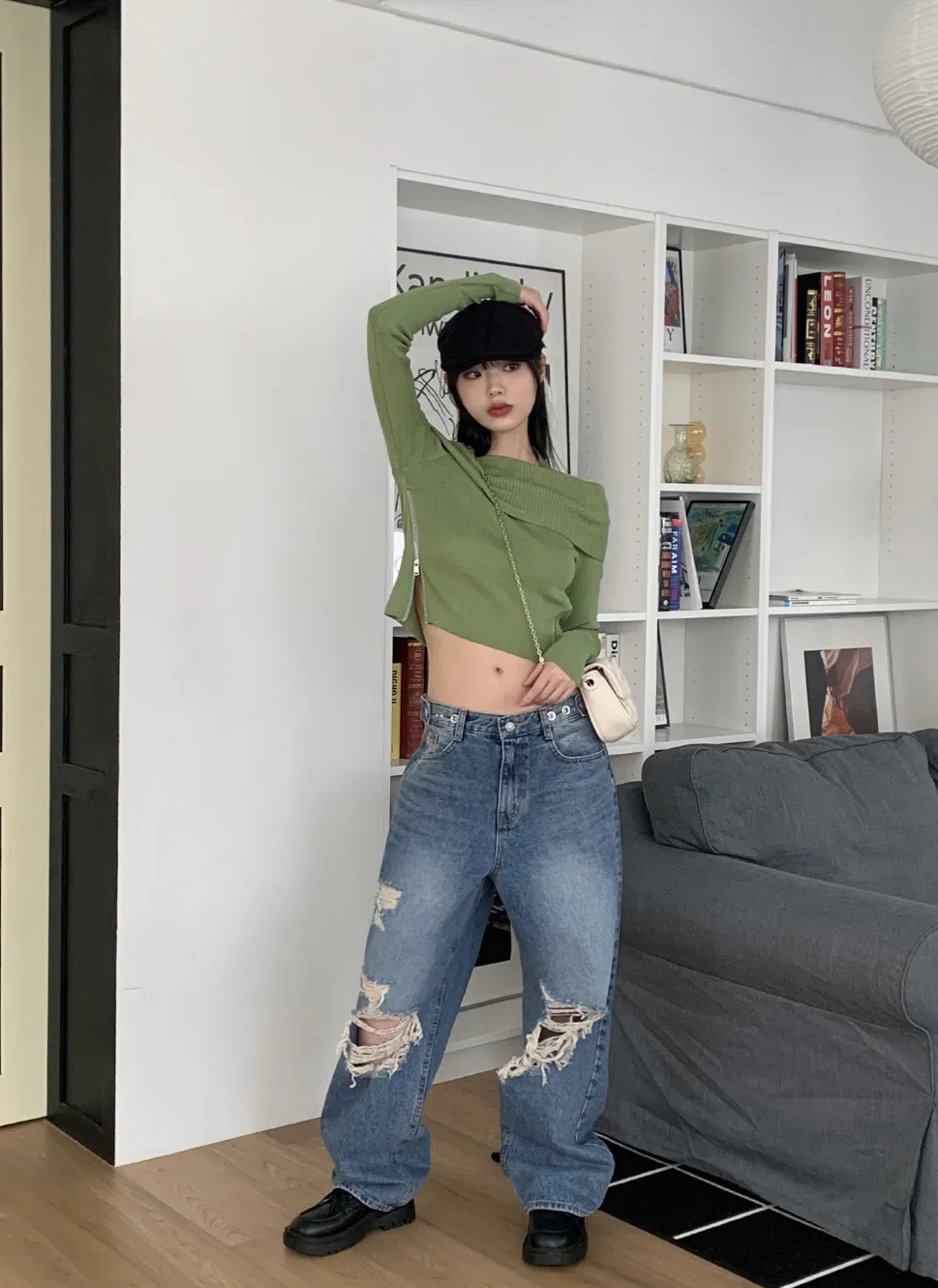 着用 : ブラック / FREE,アイボリー / FREE