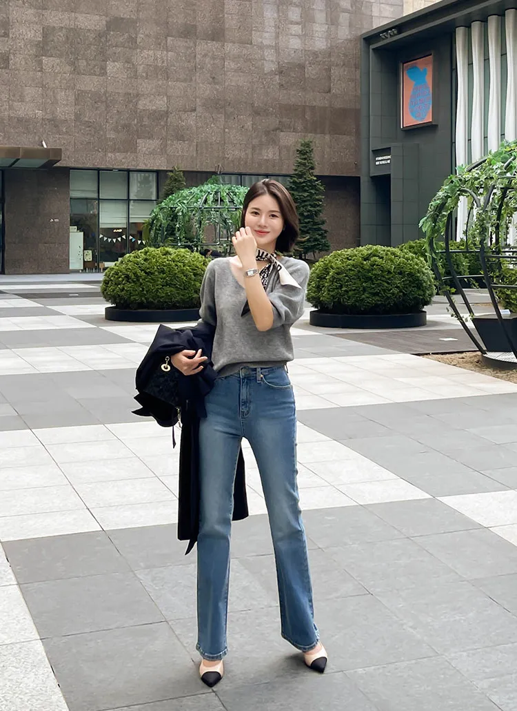 ストレッチデニムジップアップバックルウォッシングポケット骨盤パッドスリムロングフラップポケットリベットループバックポケットブーツカットライトブルーデニムパンツ
