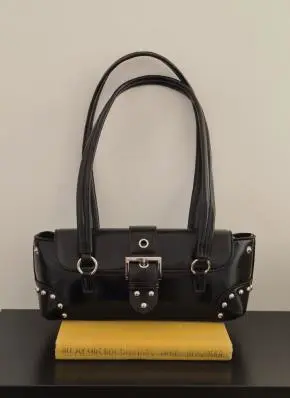 レザー調スタッズアイレットバックルショルダーバッグ