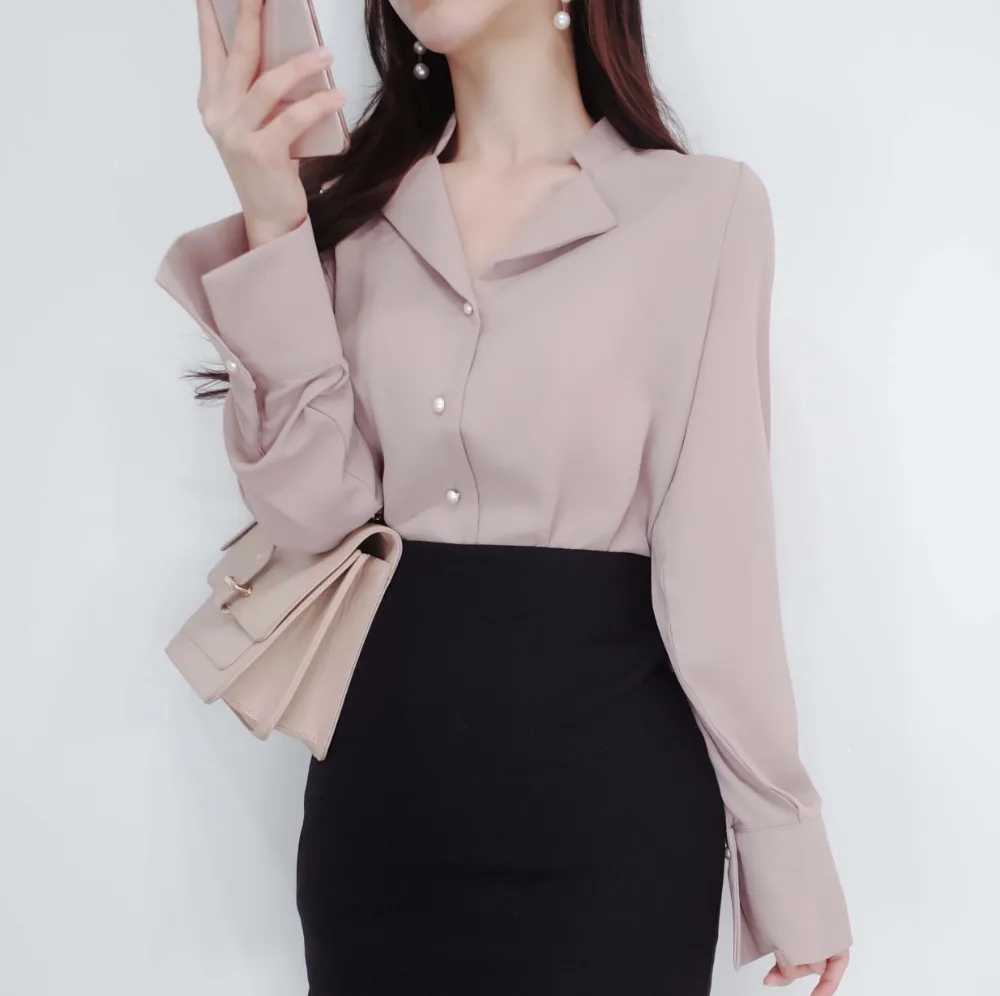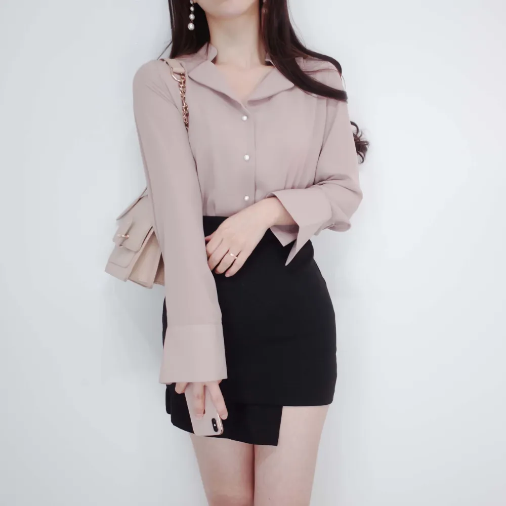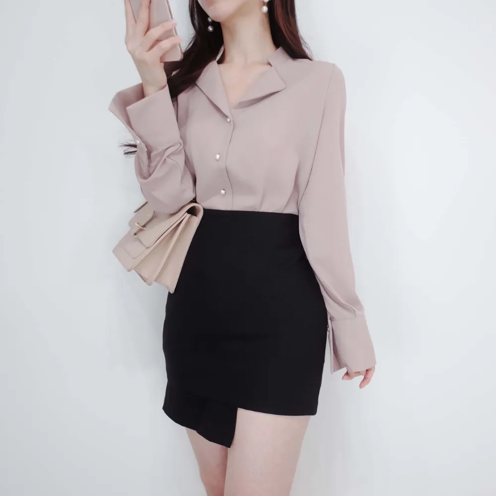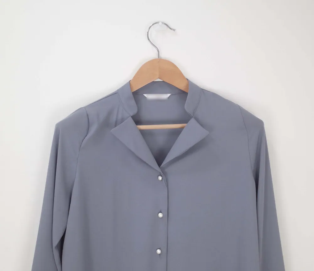 ・ダブルカラーネック ・パール調ボタン
