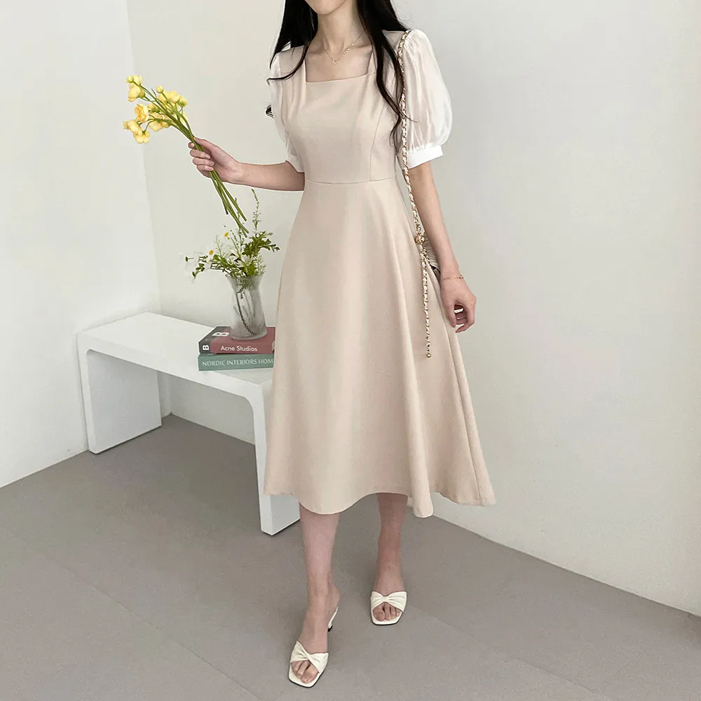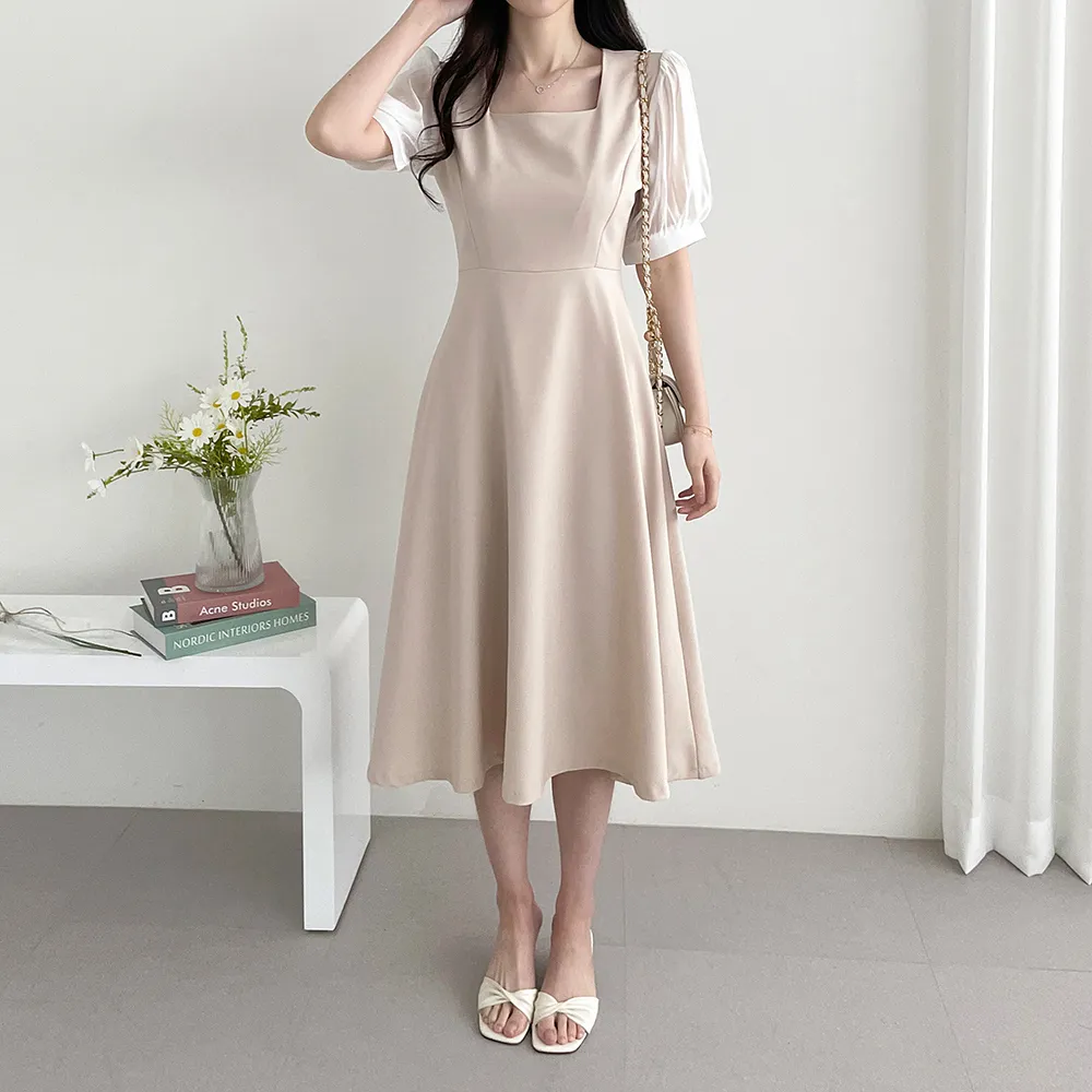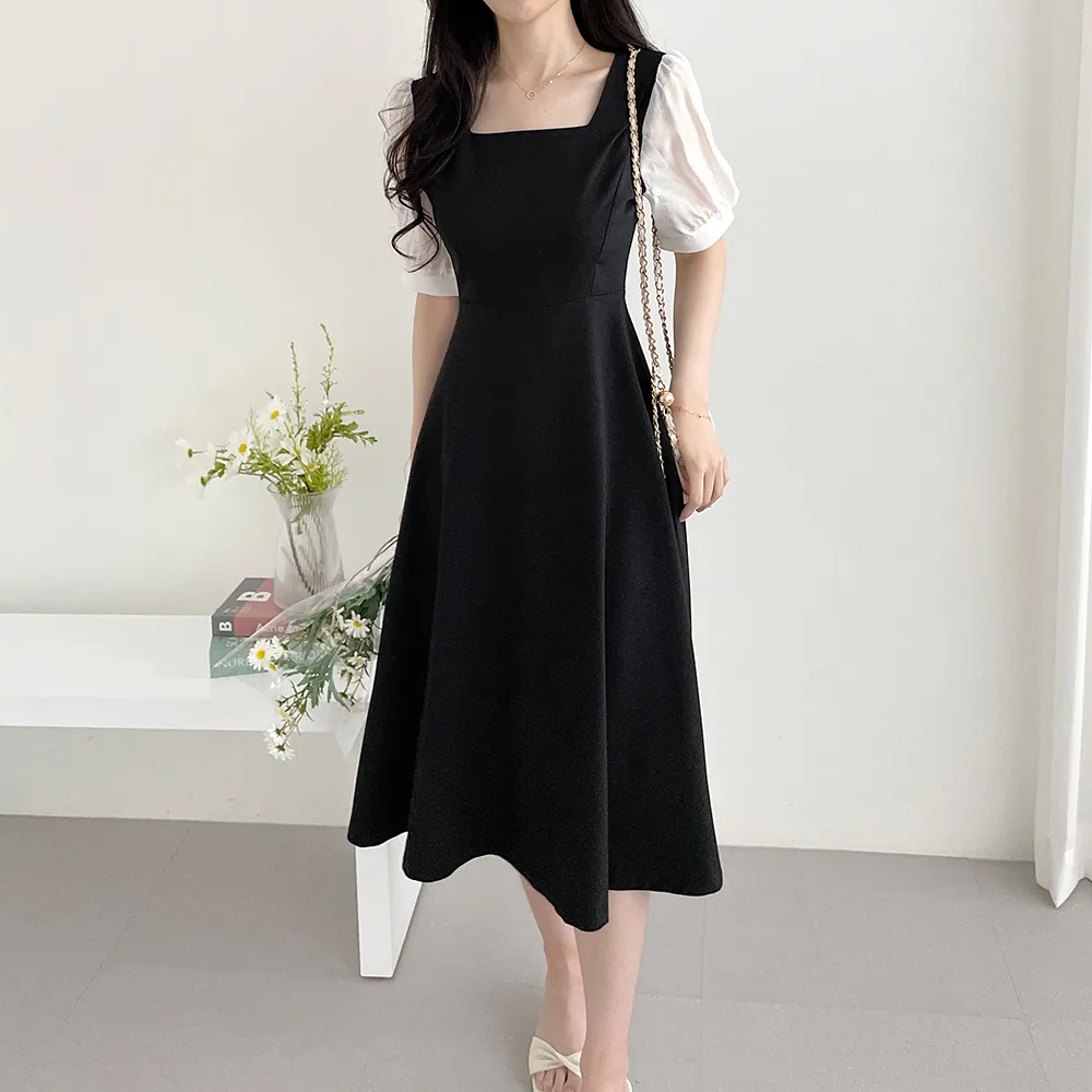・スクエアネック ・配色パフスリーブ