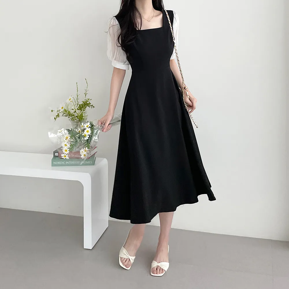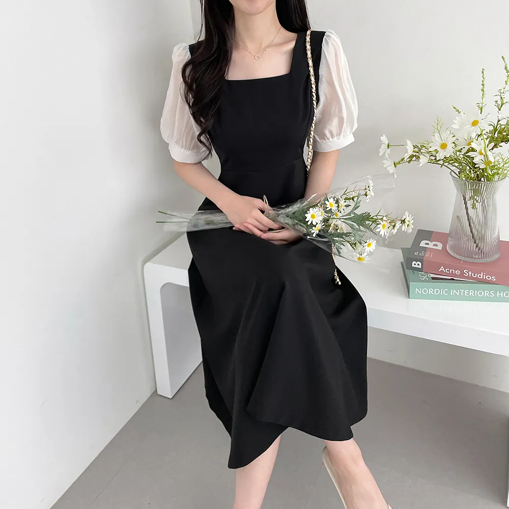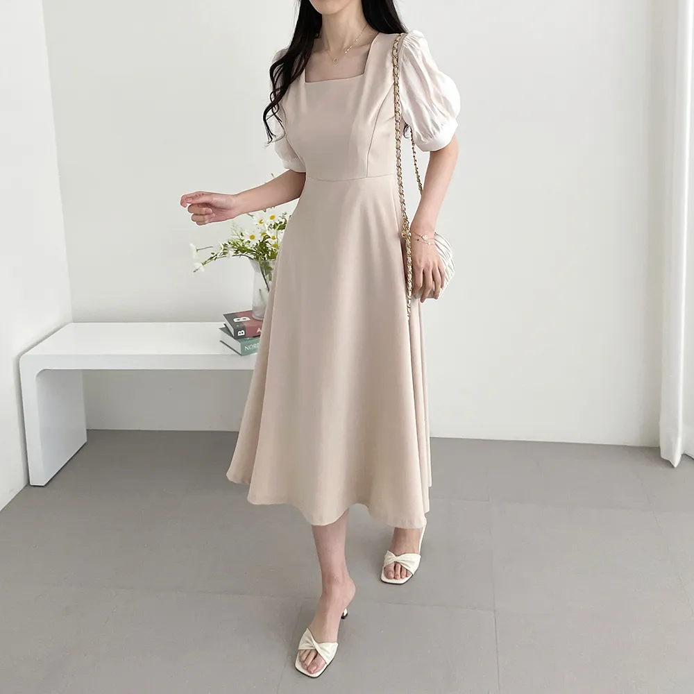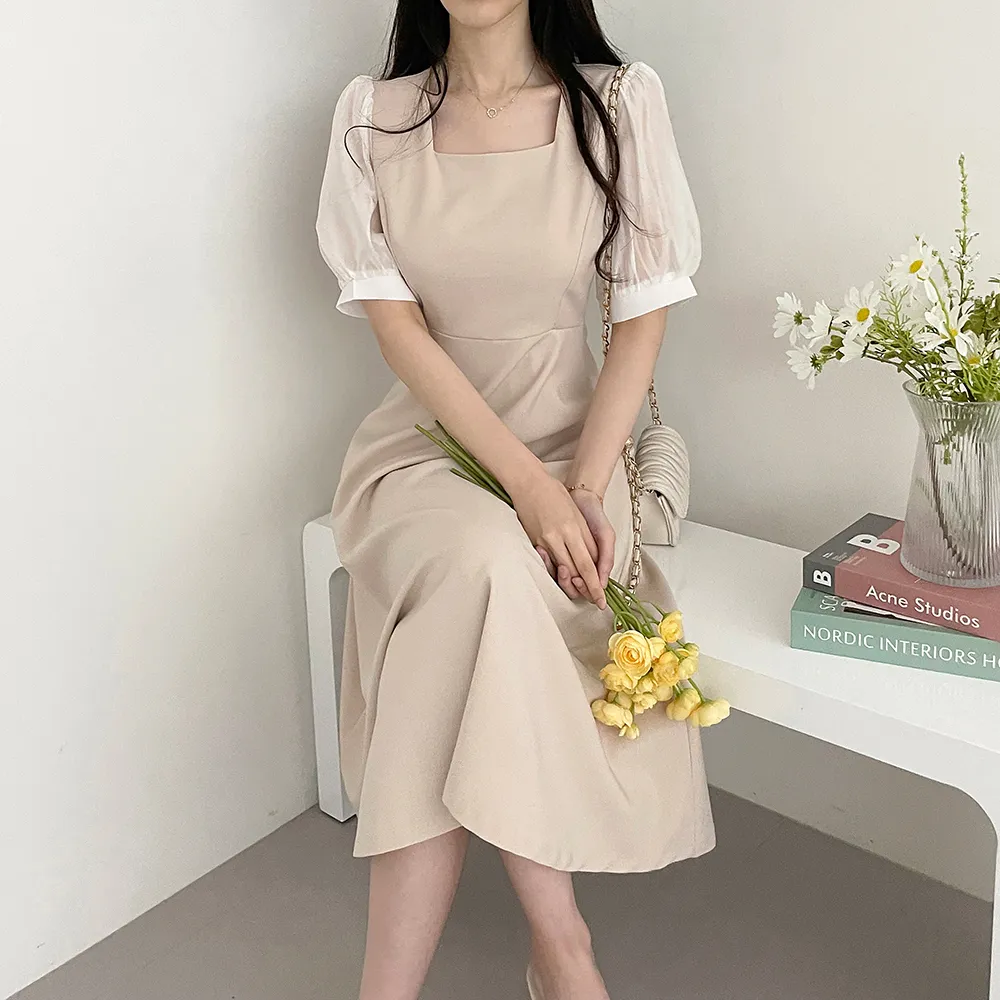 ・スクエアネック ・配色パフスリーブ