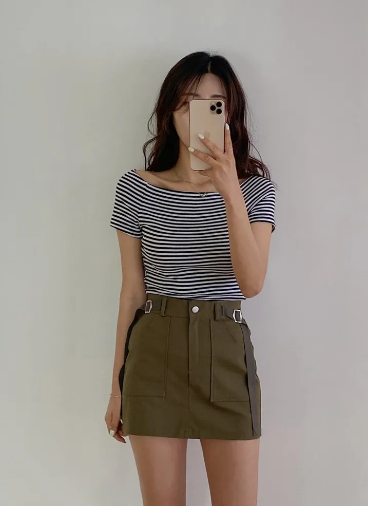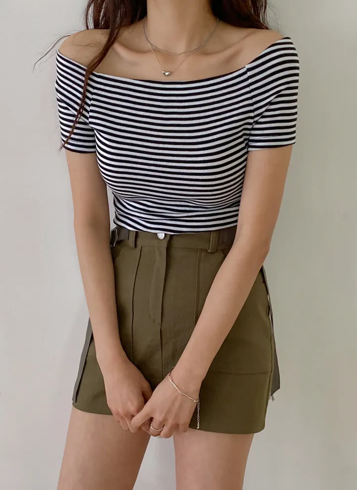 ・オフショルダー ・スリムフィット
