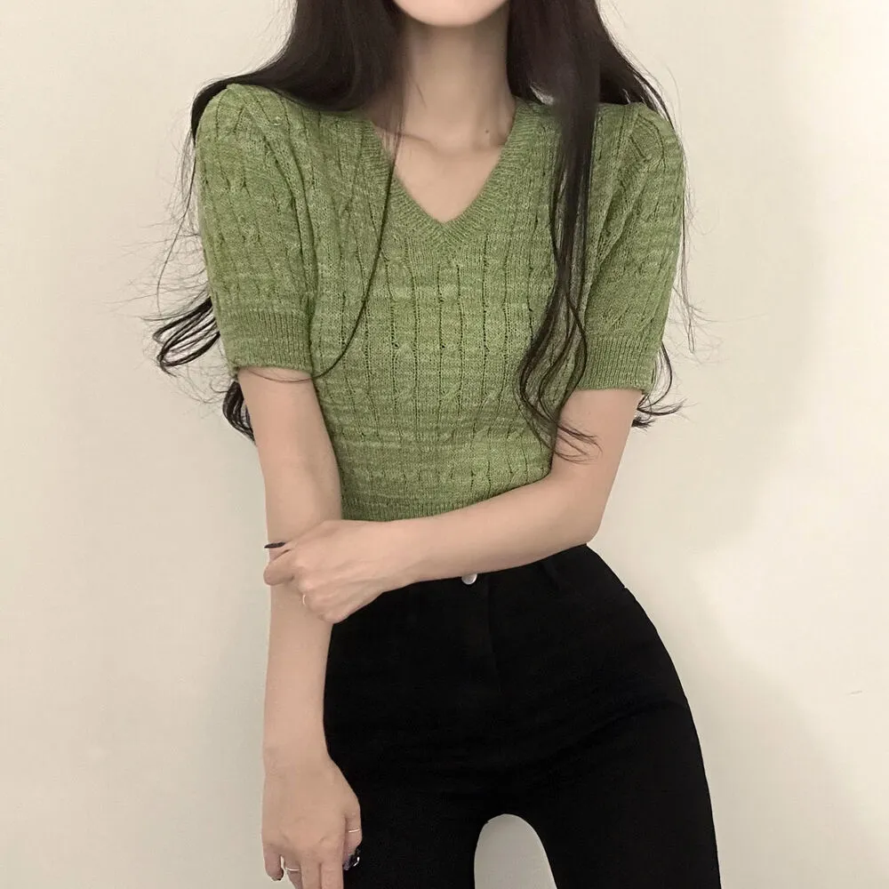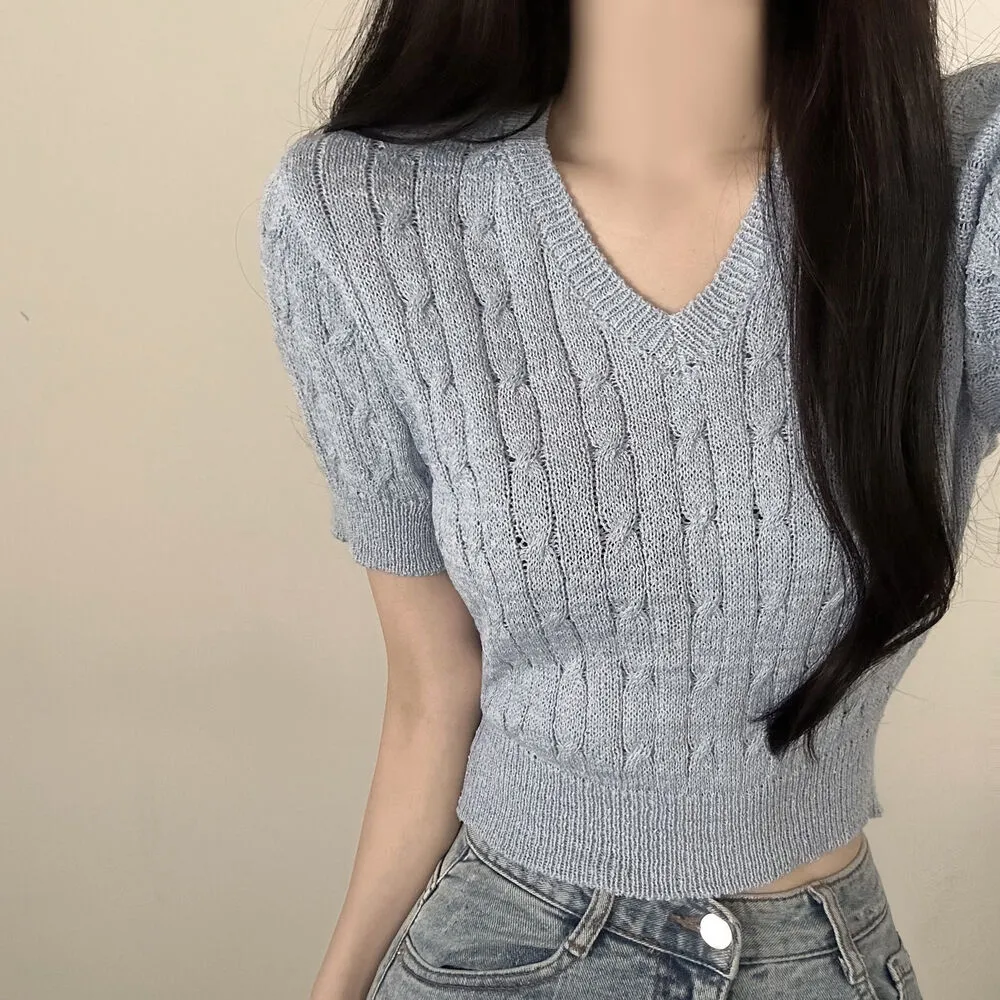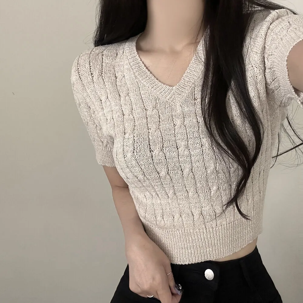 ・Vネック ・ケーブル編み